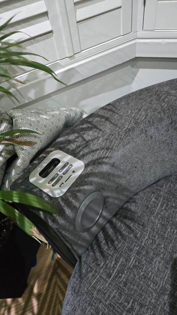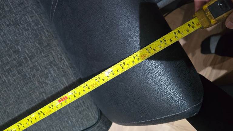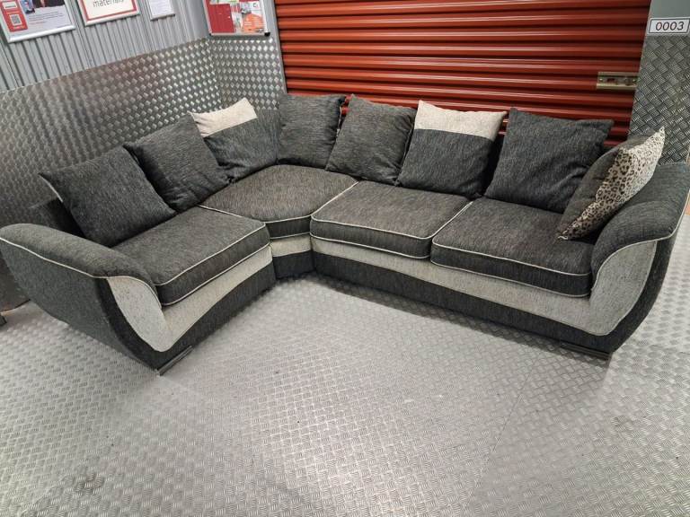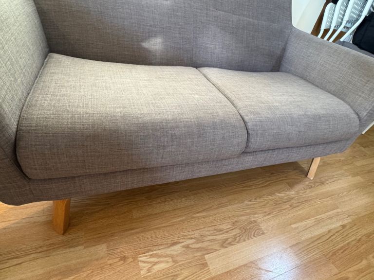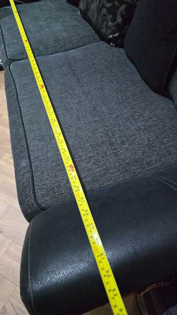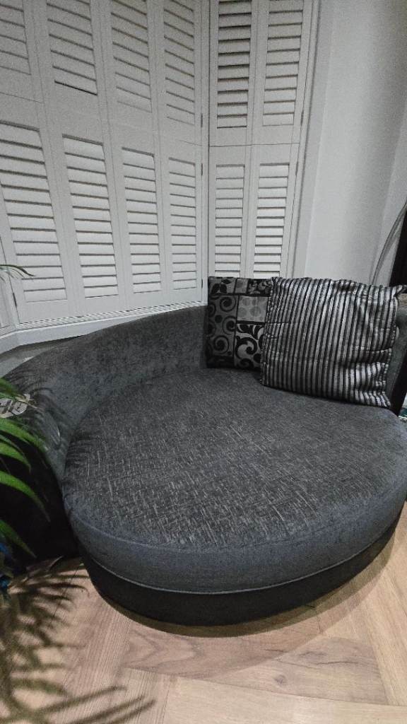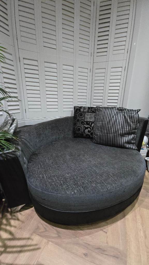 Grey and black with cushion back. In good condition. From a pet free, smoke free and child free household.