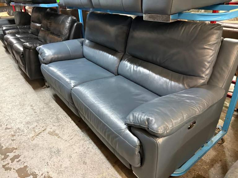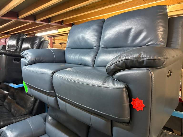Posting for under a monthDfs Full Leather Royal Blue 3 and 2 Seater Electric Recliner Sofas with USB
