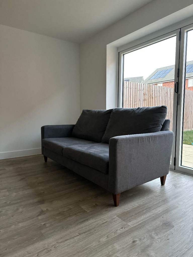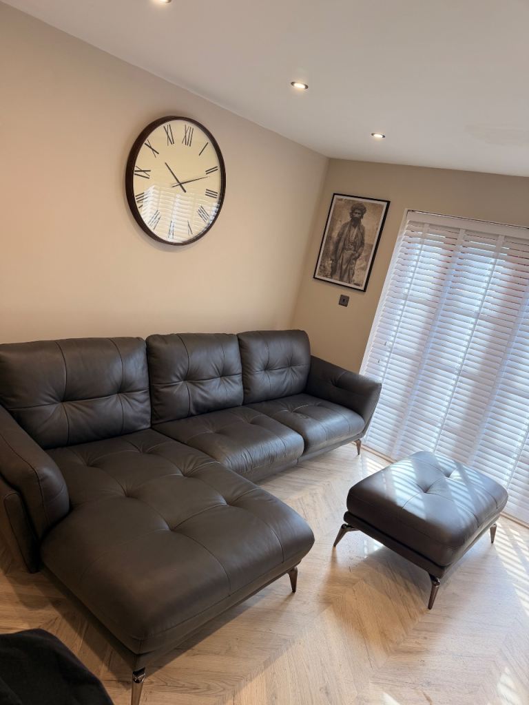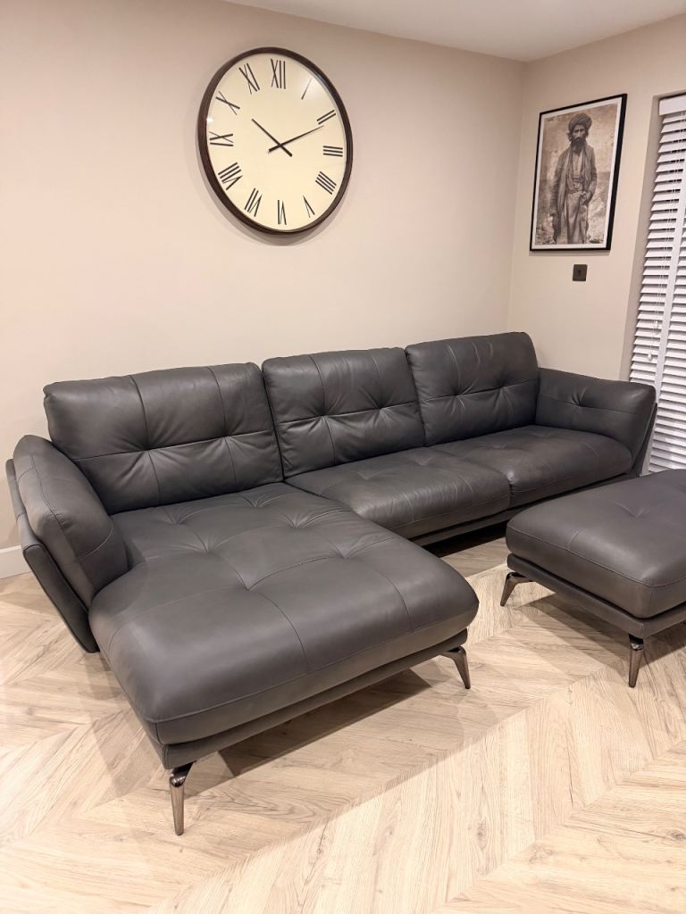 Graphite grey large leather corner sofa and footstall good condition still nearly £3000 in dfs to big for room