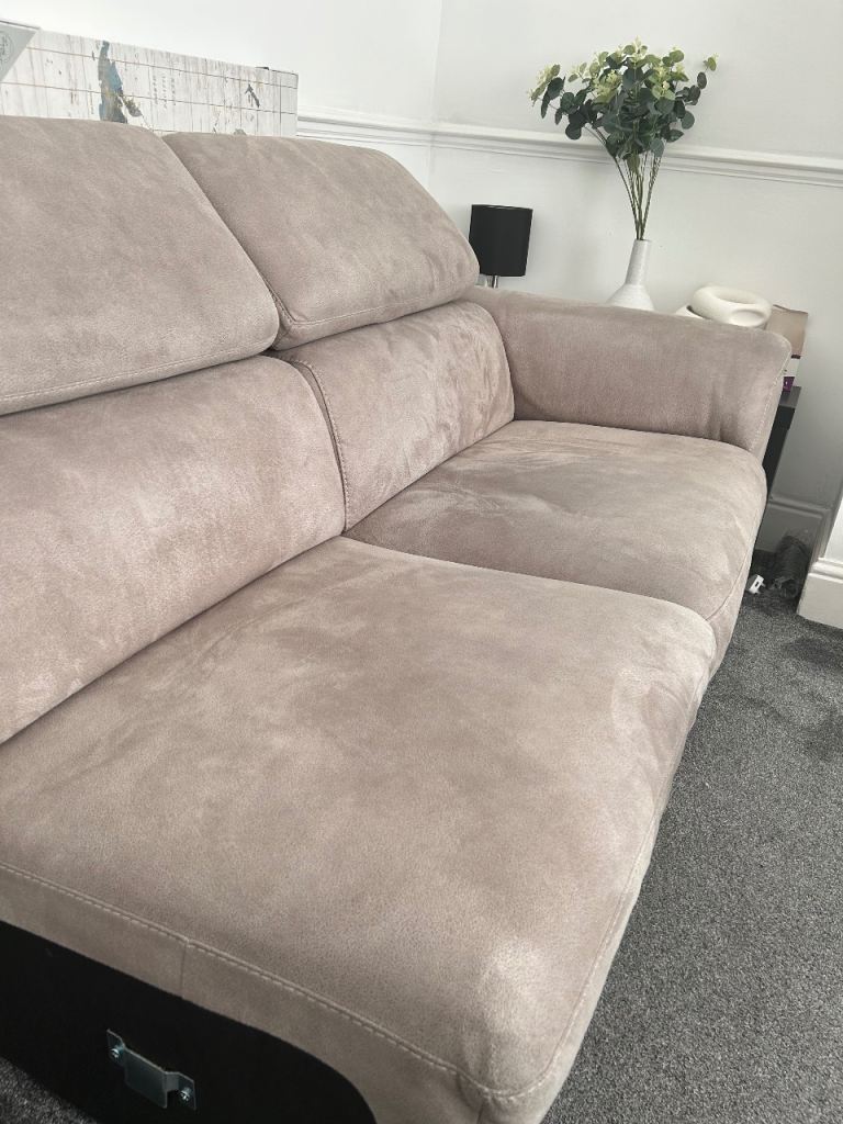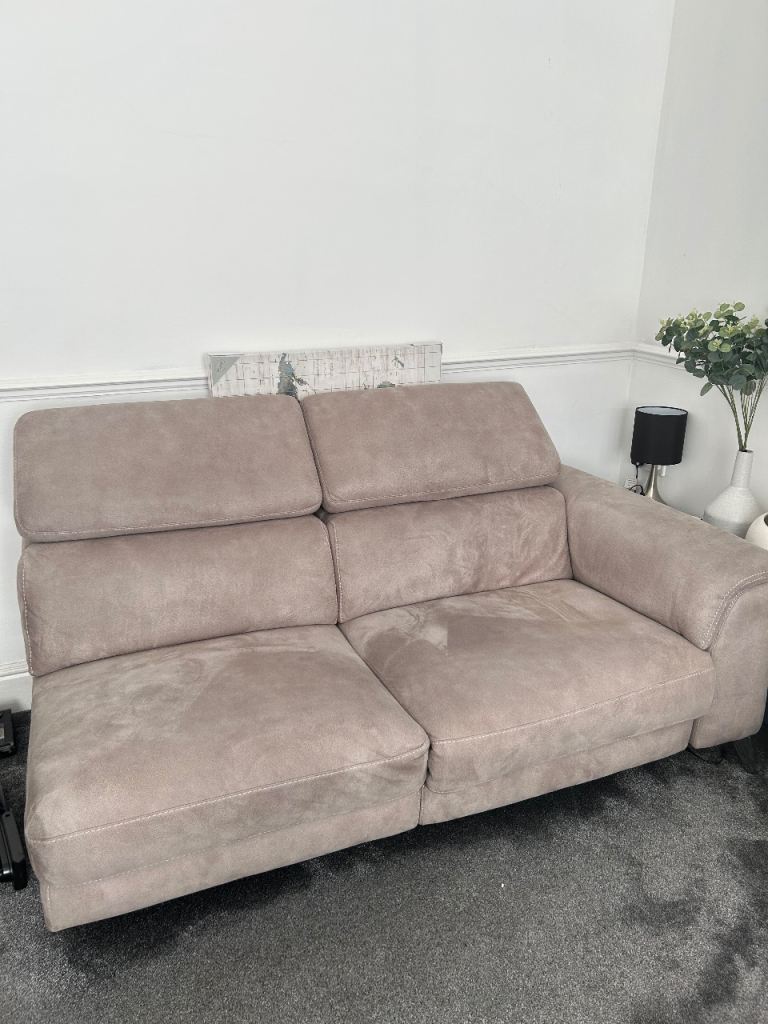 Stunning taupe colour - no marks or damage, one seat reclines and charger for phone on one side