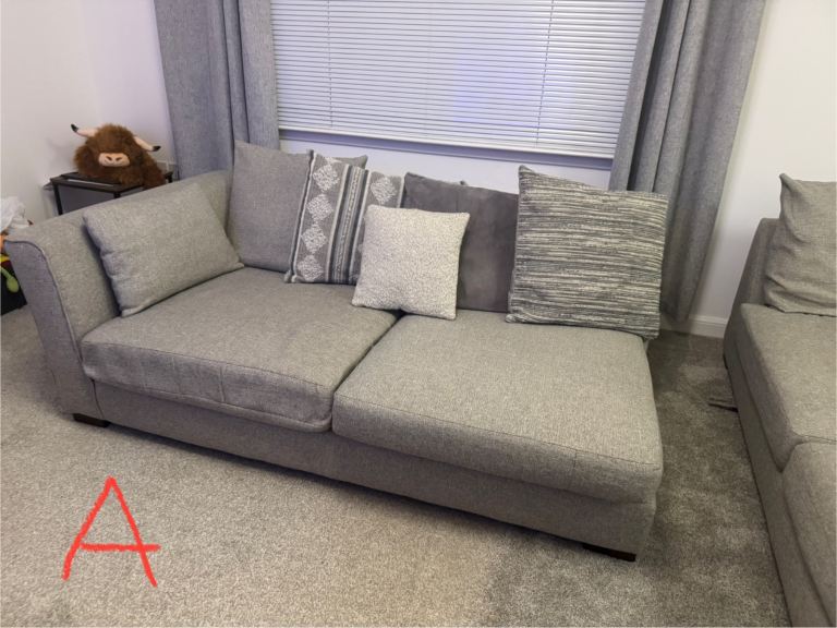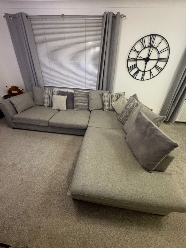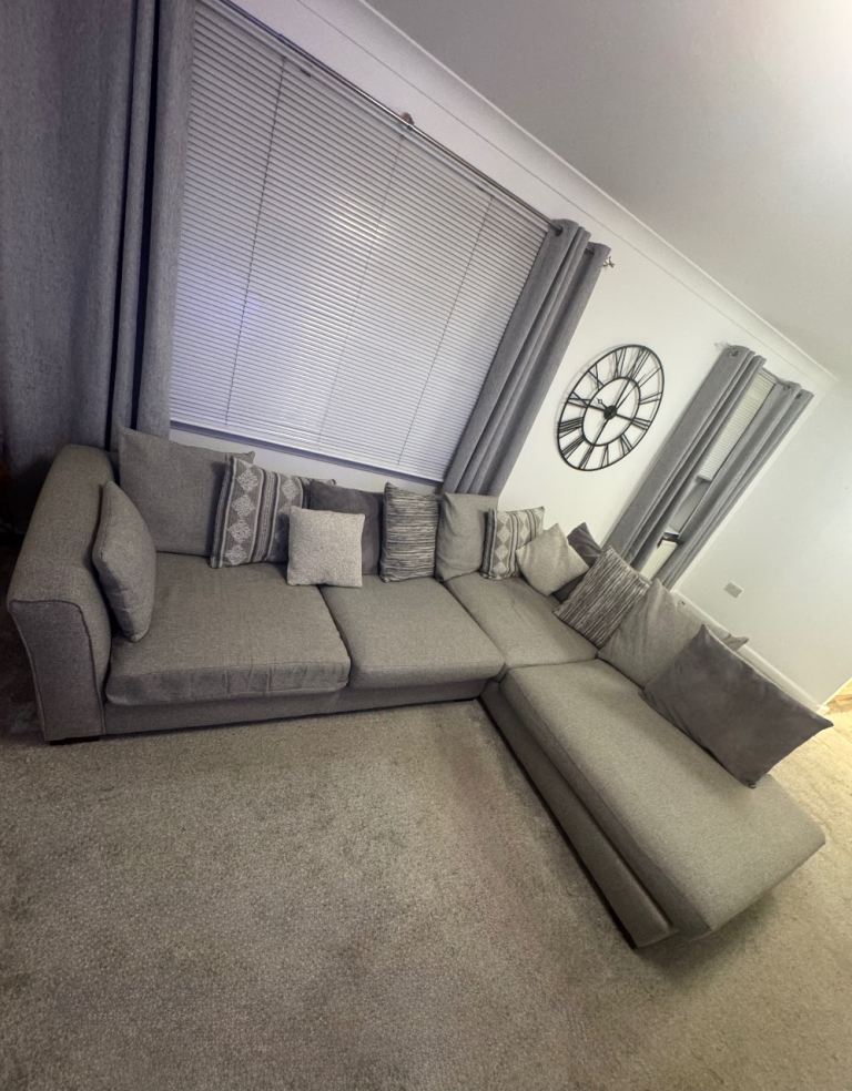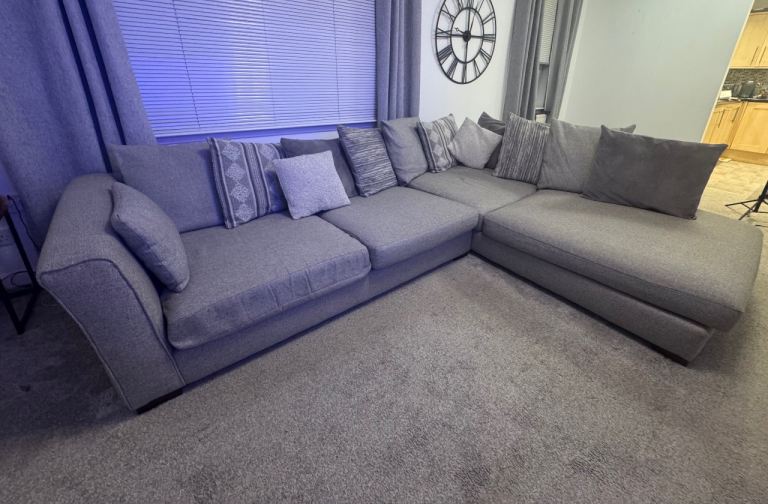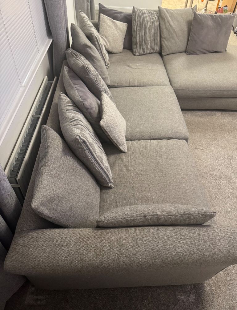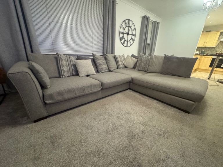 DFS Left Facing Pillow Back Corner Couch Grey Fabric Sofa - Large