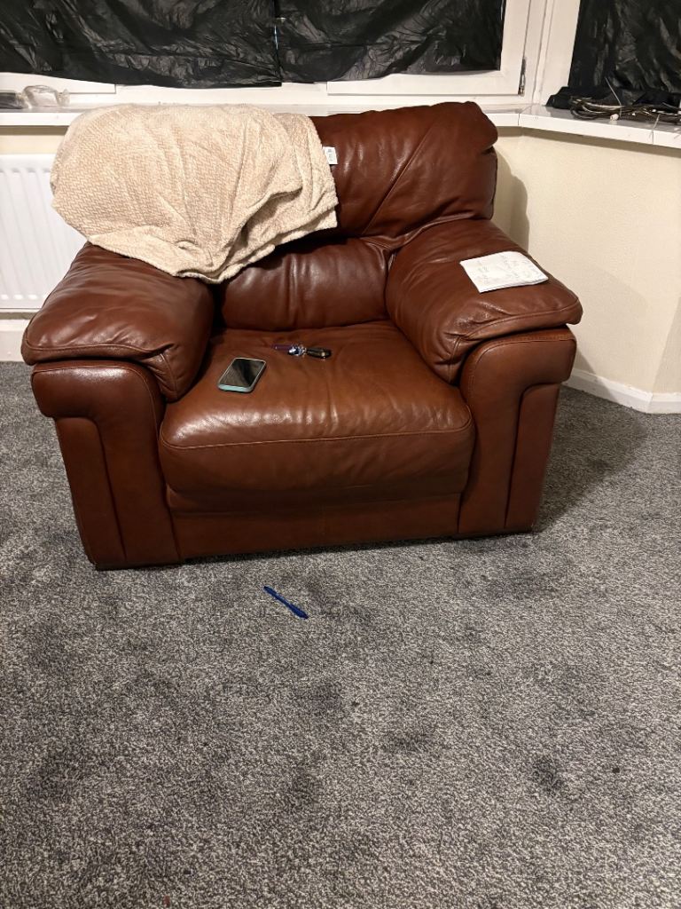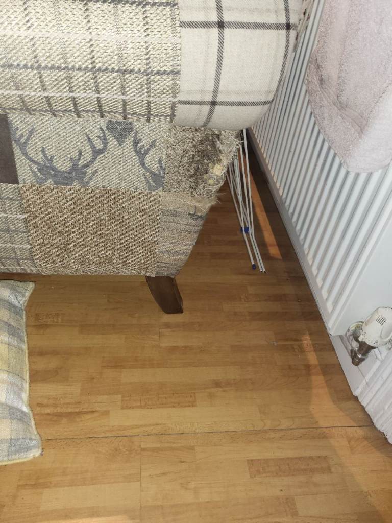 still with the fire retardant and care instructions label on. The cat has clawed a small patch on one side at the back but if you have this next to a wall you wouldn't see it.