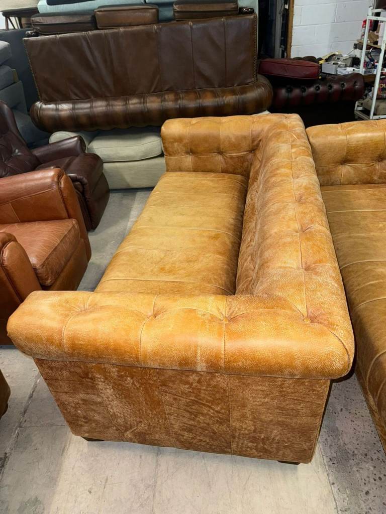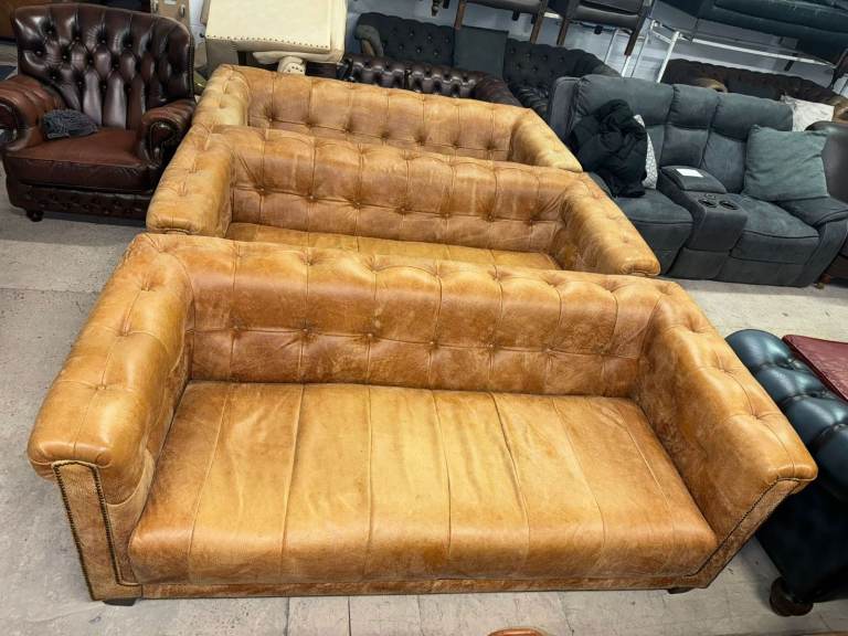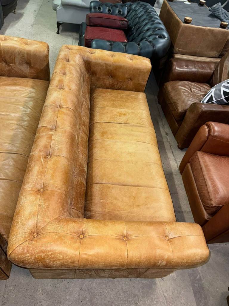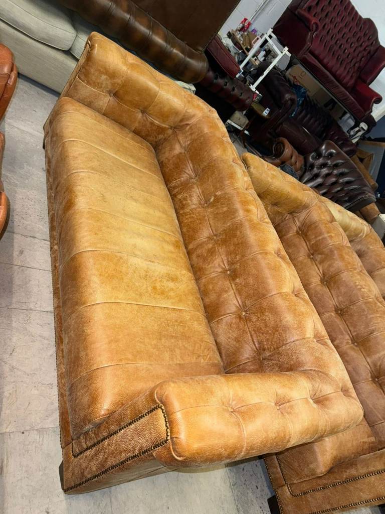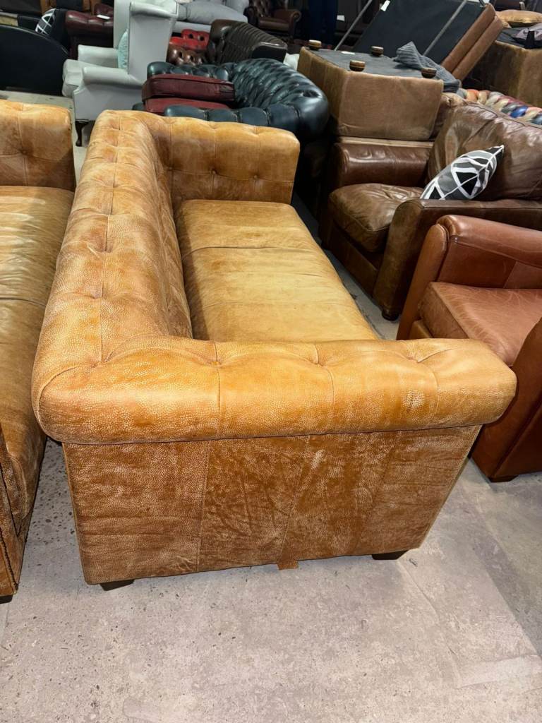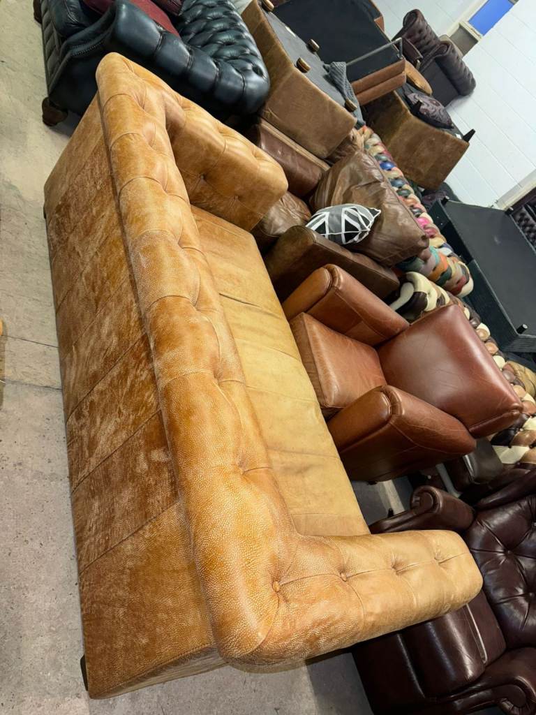 DFS Tan Chesterfield style sofa Deliv Poss Del