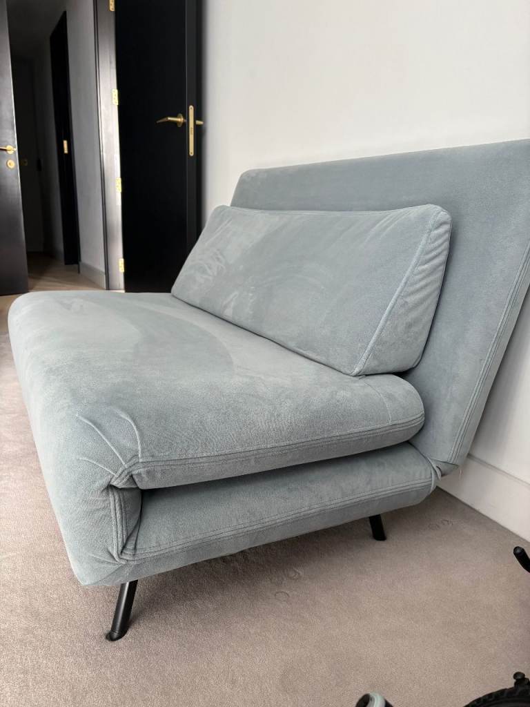 Double Seat Sofa Bed, Arctic Blue Velvet. Stylish, comfortable and practical sofa bed, perfect for guests or small spaces. Easily converts from a sofa into a bed in seconds. In a beautiful arctic blue color, perfect for adding a modern touch to any room.