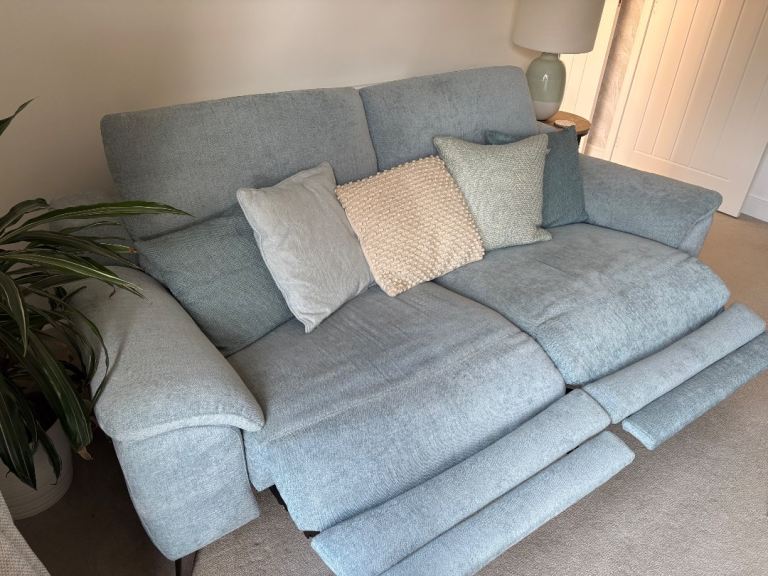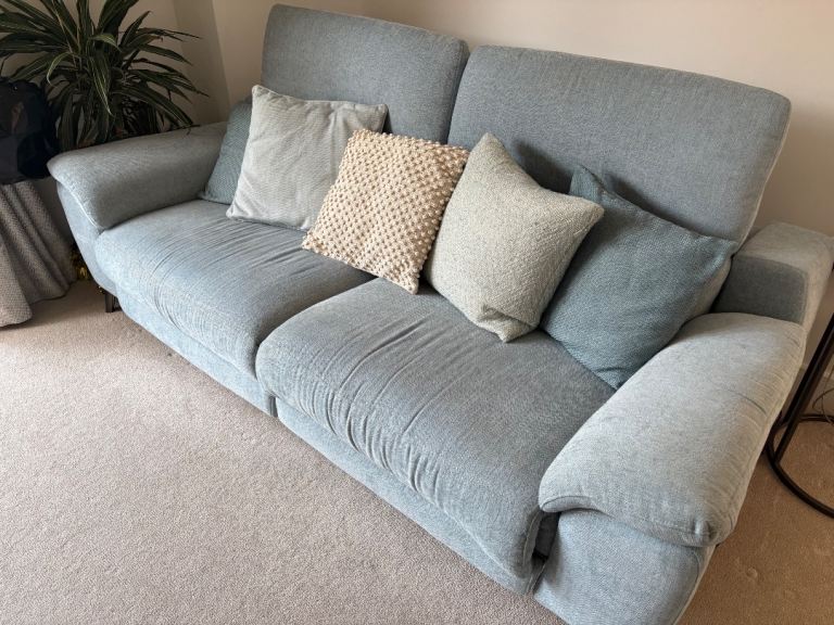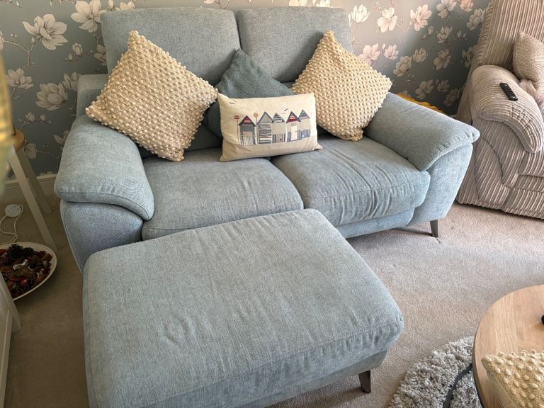 Posting for under a monthDuck egg blue sofa x2 (including foot stool)