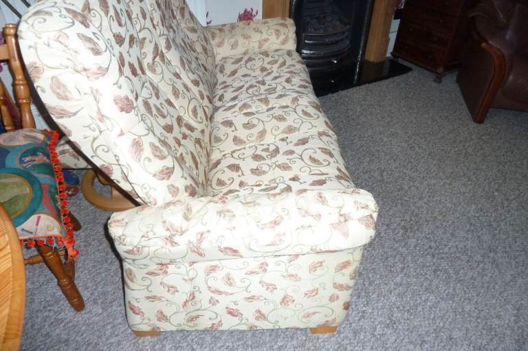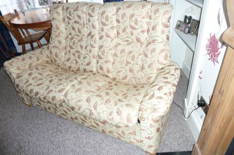 Ekornes Stressless 2 Seater Sofa Around 1500mm Wide in cream autumn leaf fabric in great condition £60 Easy Pick up main-door no steps park at door ( NO TEXTS PLEASE )