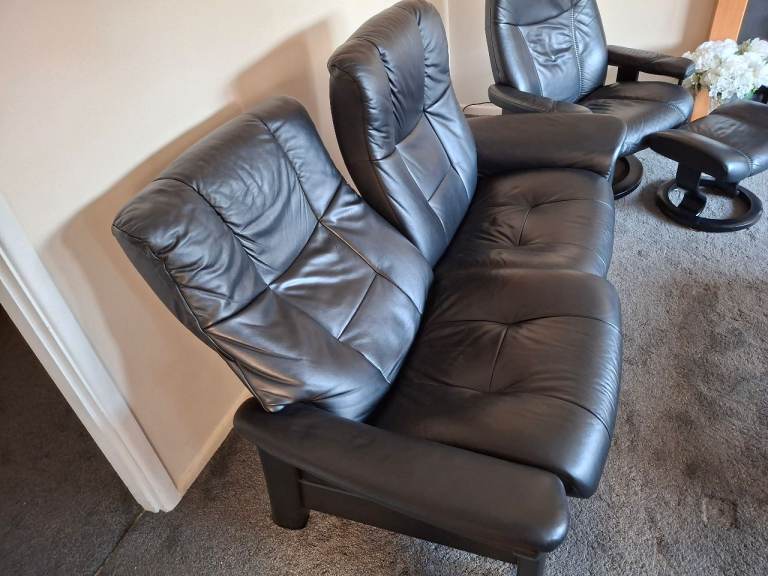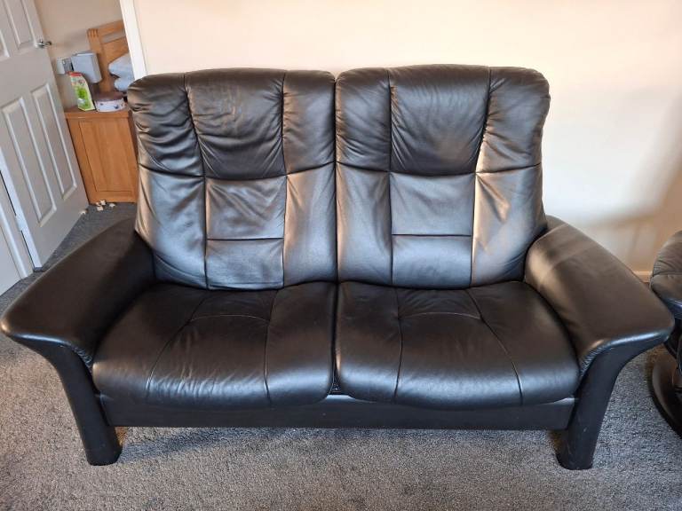 Ekornes stressless black leather sofa