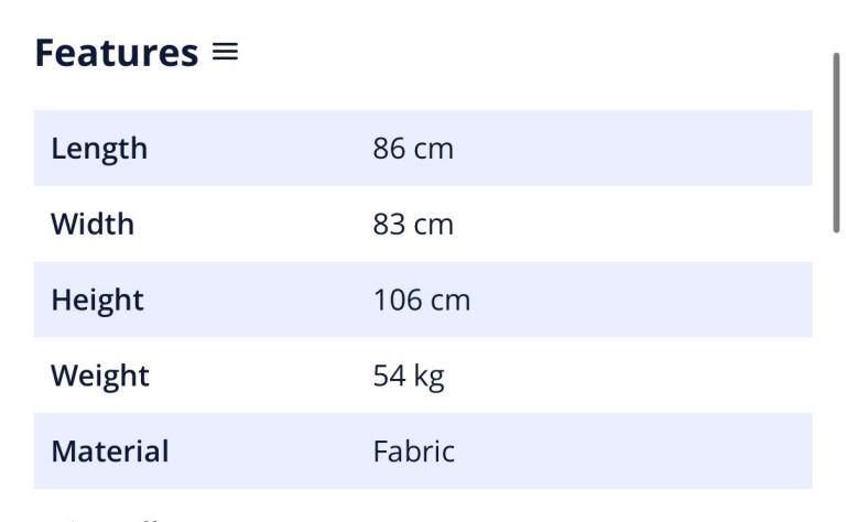 Dimensions: Height: 106cm; Width: 90cm; Depth: 83cm; Seat Depth: 52cm; Seat Height: 51cm; Seat Width: 51cm; Backrest Height: 65cm; Armrest Height: 64cm; Recline Dimensions: W:90D:165H:83