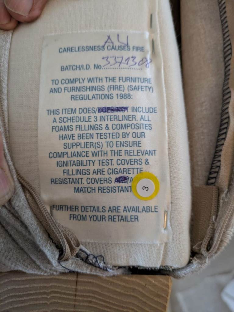 Multiyork sofa and armchair chair in brilliant condition. With safety regs labels. Recently professionally reupholstered - removal and washable covers. Chair H 100cm W90cm D90cm, Sofa H100cm W170cm D 90cm. From pet and smoke free home.