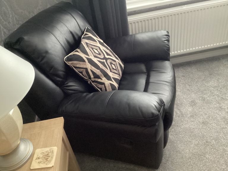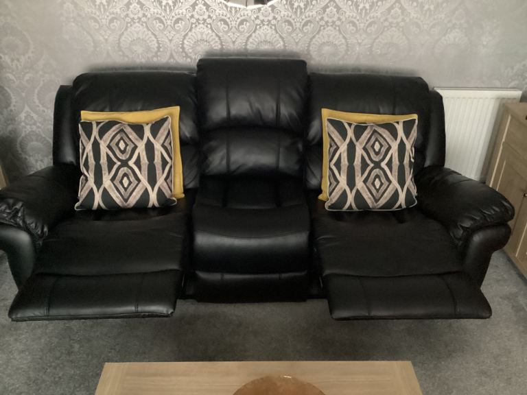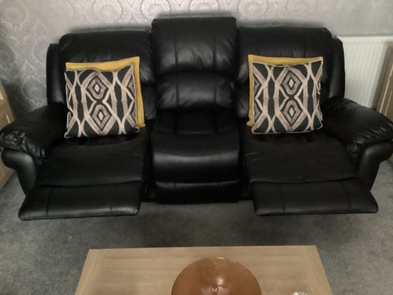 Posting for 14+ yearsFarnham Black Leather 3+1+1 Manual Recliner Suite