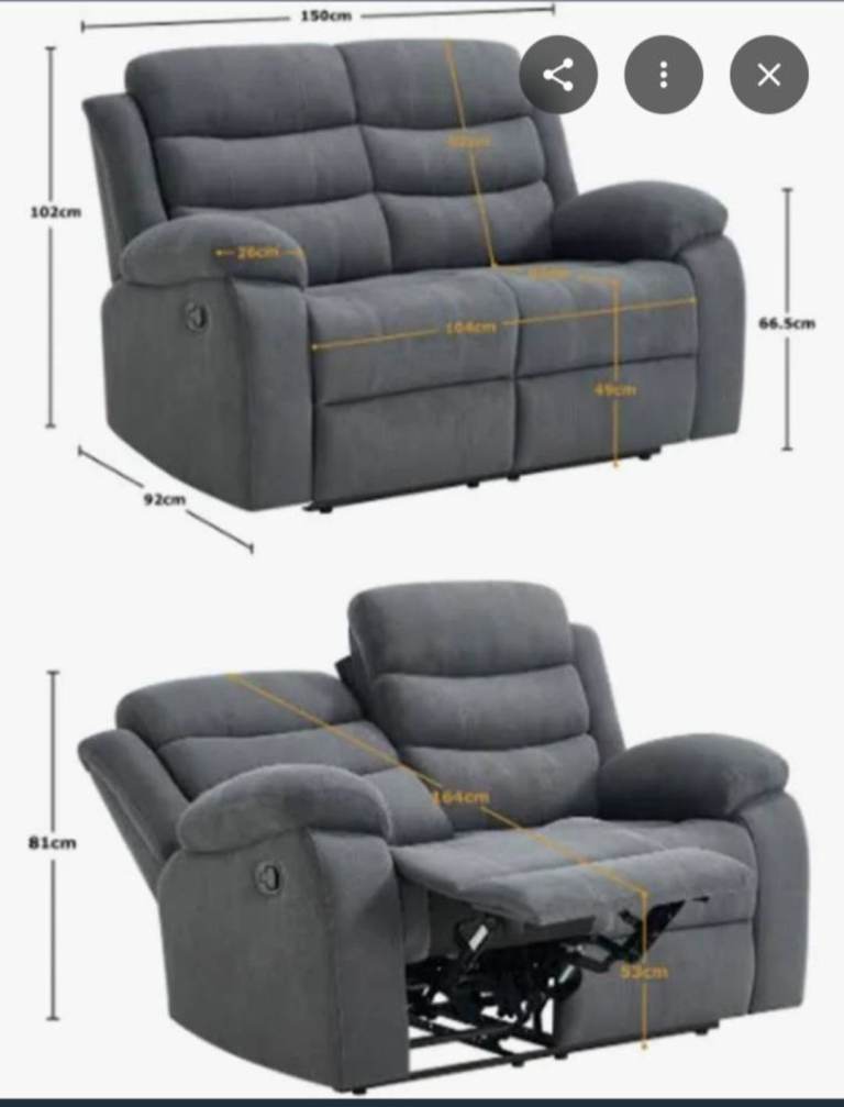 Posting for 2+ yearsFREE 2-seater manual recliner sofa in grey fabric