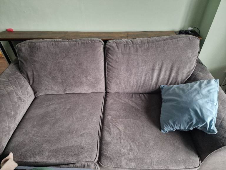 They’re around 5 years old and in okay, well-used condition. There’s some general wear as you’d expect, and the 2-seater has a small iron mark on one of the cushions. They’d definitely benefit from a clean, but they’re still comfy and have plenty of life left in them.