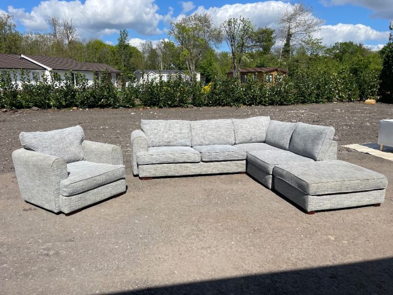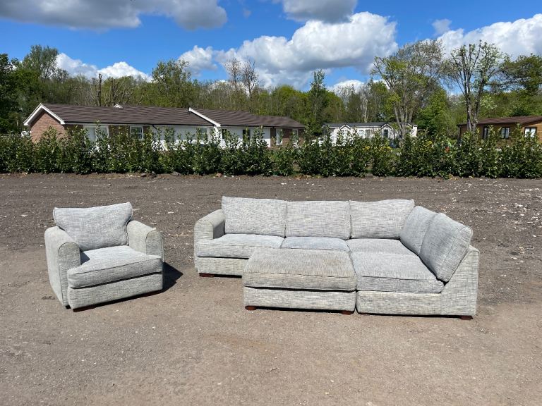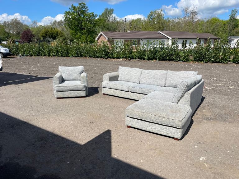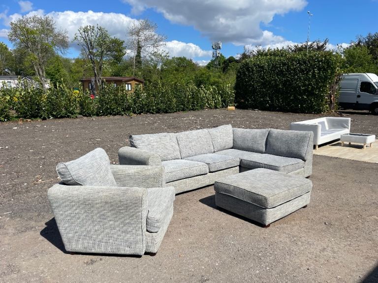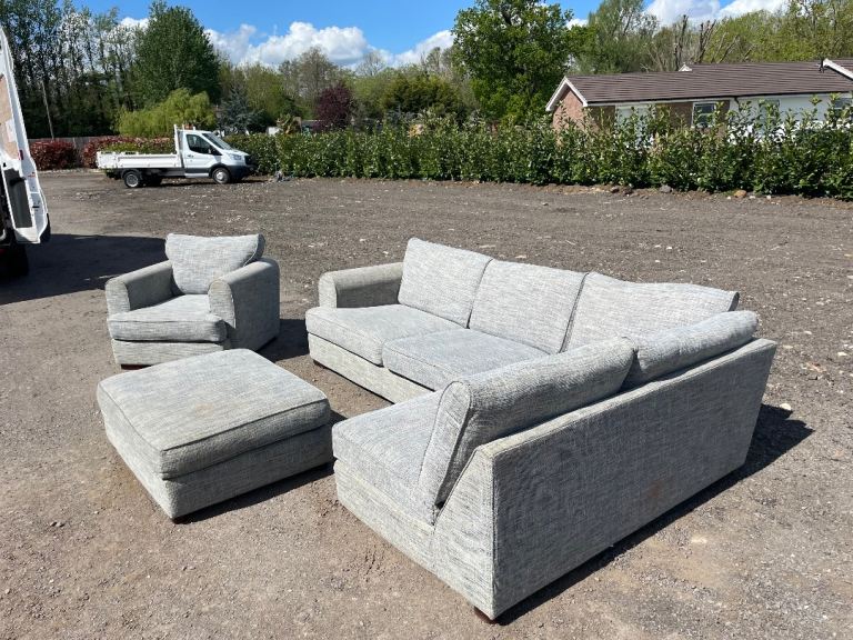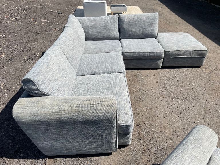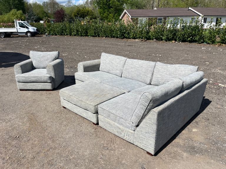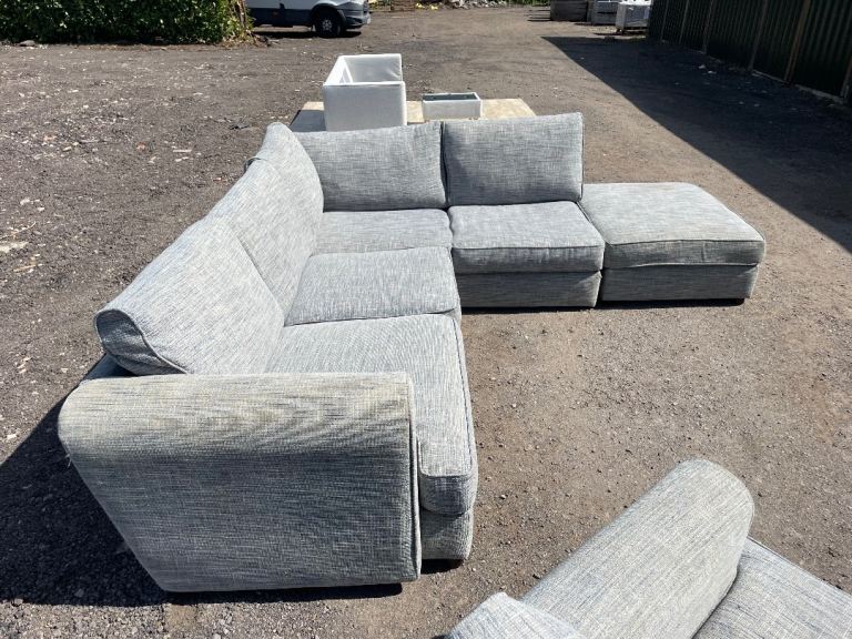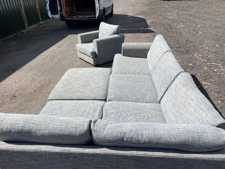 FREE DELIVERY 🥰🚚🥰 HUGE JOHN LEWIS GREY FABRIC CORNER SOFA WITH FOOTSTOOL & ARMCHAIR GOOD CONDITION as shown in pictures good condition and comfortable sofa some signs of use but all cushions are removable and washable. Sofa comes in 2 parts.