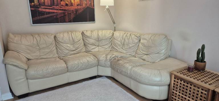 DFS Corner leather sofa, cream colour,good condition,smoke and pet free home,five/six seater.