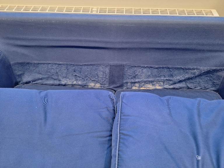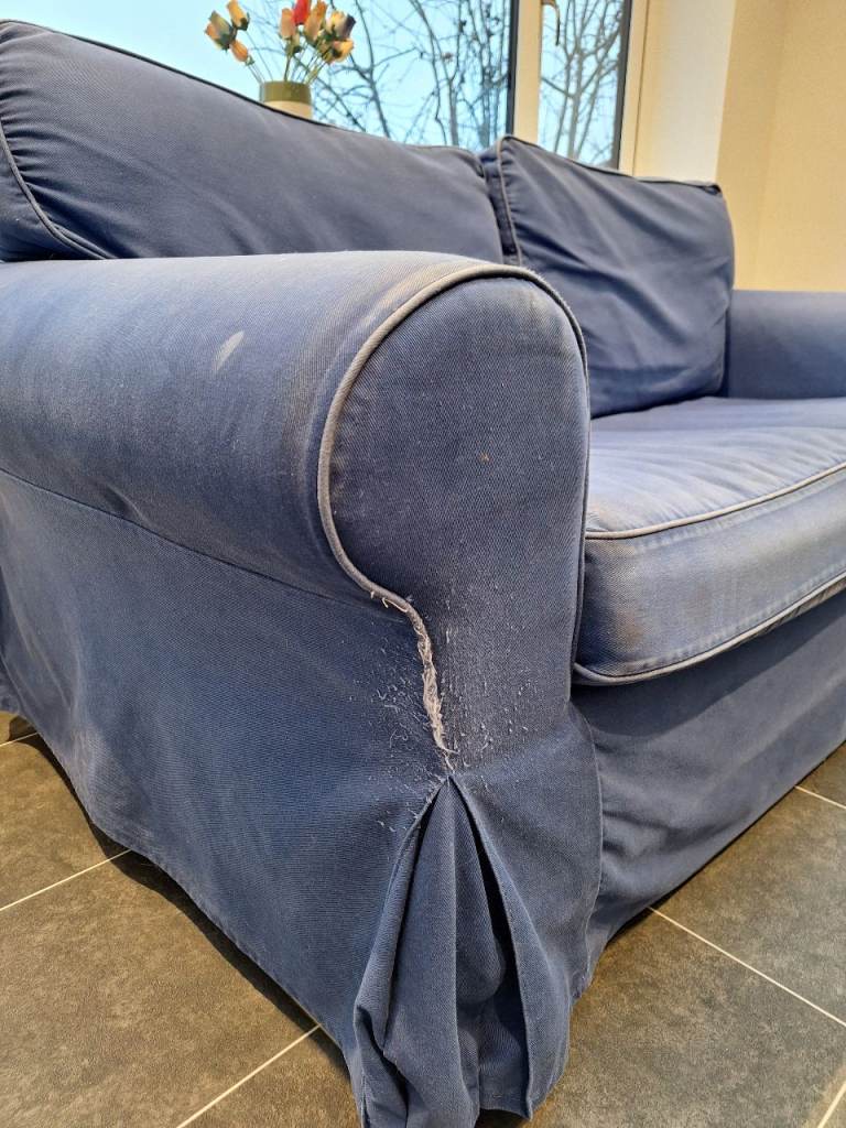 One of the arms is slightly wobbly and the covers ideally would be replaced (sold at ikea still). Otherwise a comfy sofa.