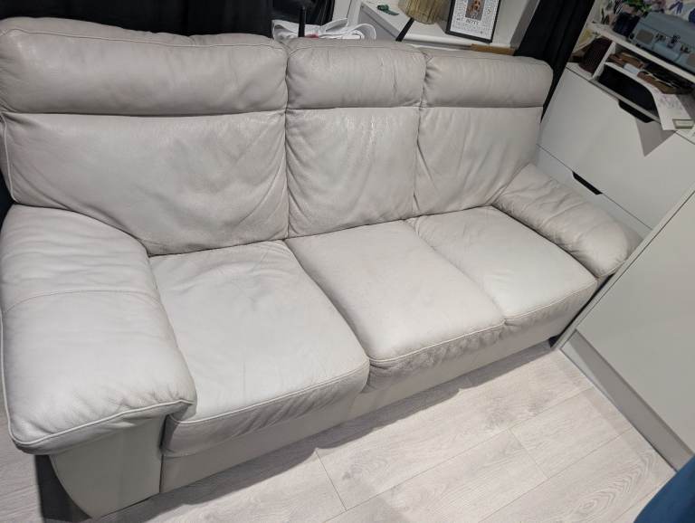 Posting for 5+ yearsFree Light Grey leather 3 seater sofa