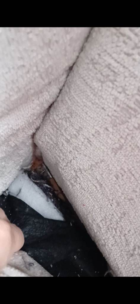 It's in good condition however, slight rip on inside corner which can be sewn and the back layer of sofa is threading.