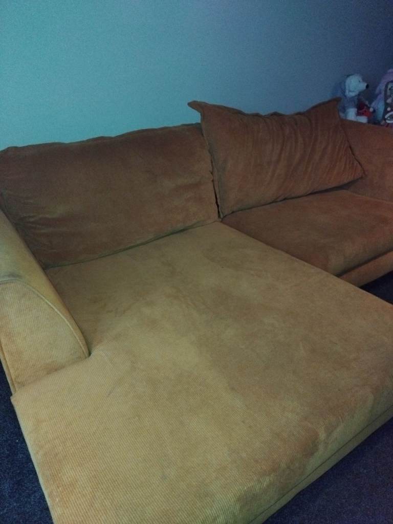 Lovely cord L shape sofa, leg section can be left or right sided..