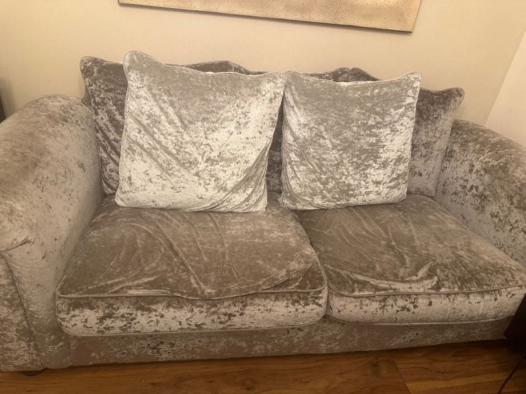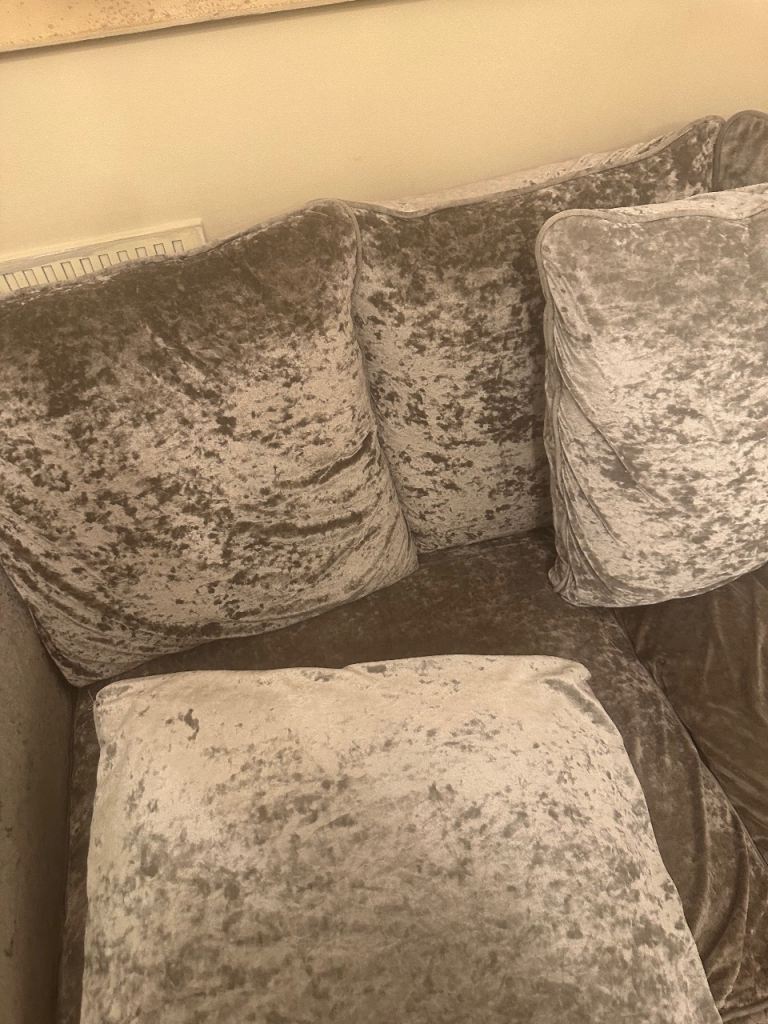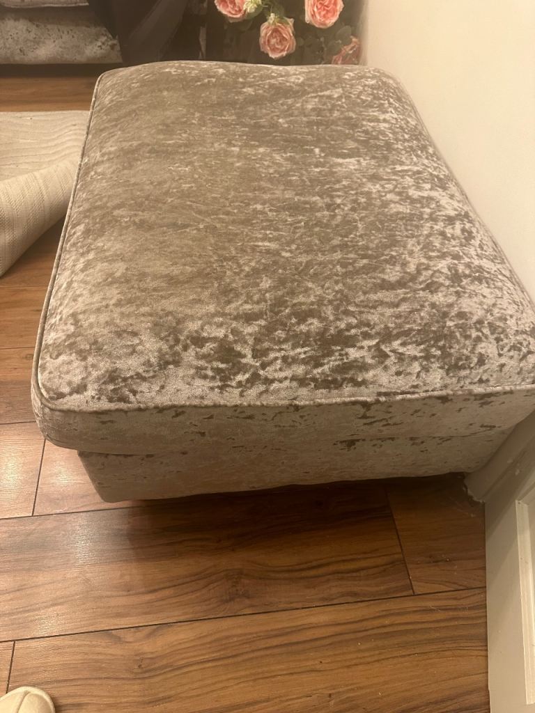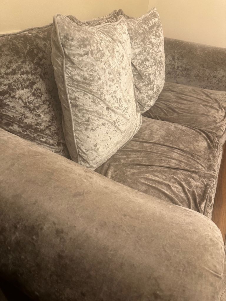 Giving away a grey velvet sofa and its stool. I am selling for 0.1 £ as I cannot put £0