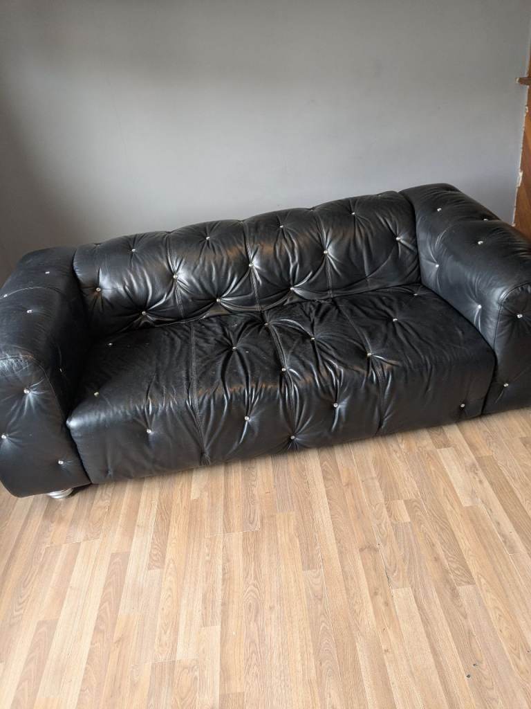 Black leather. Excellent condition. No tears or rips . No fading. Good solid furniture. Collection only. Cannot deliver.