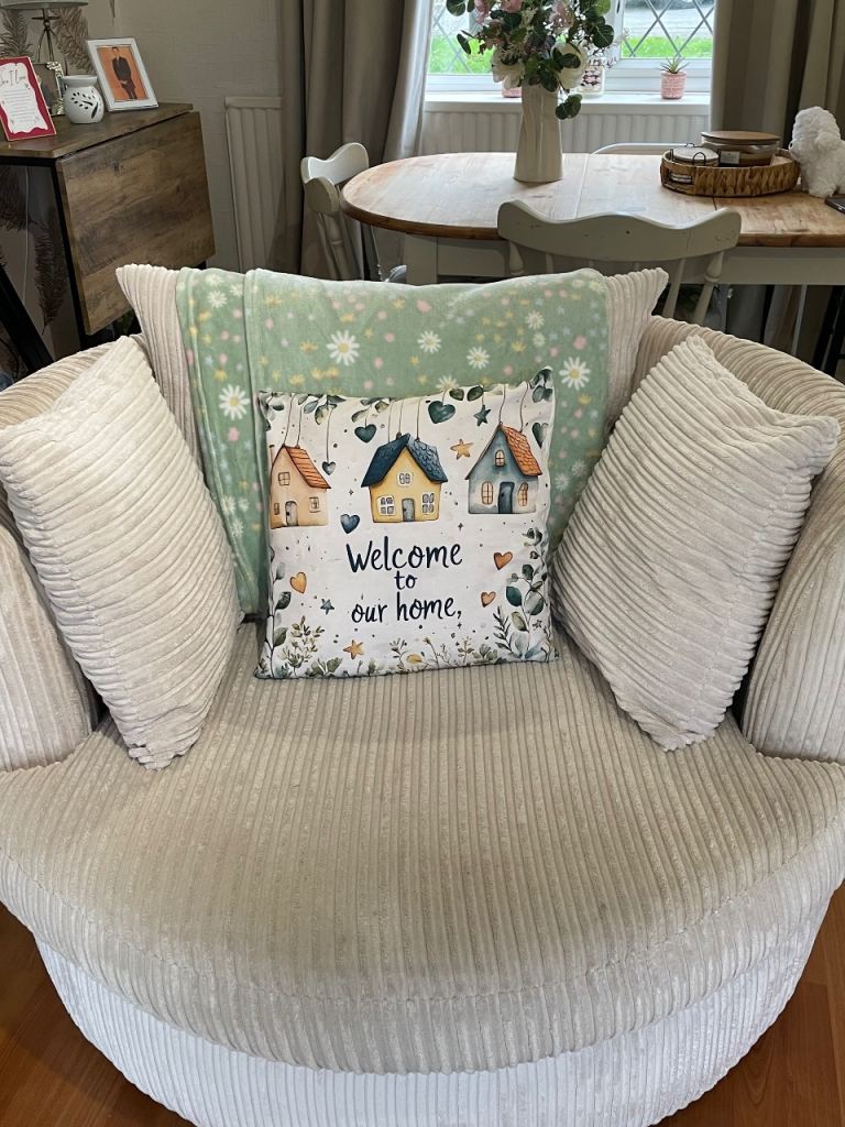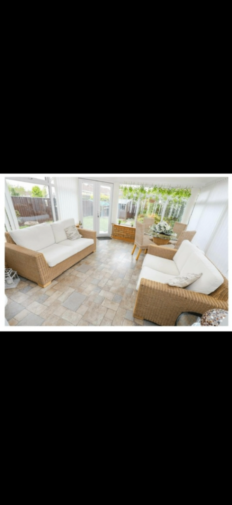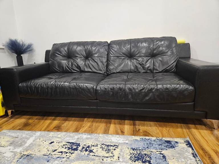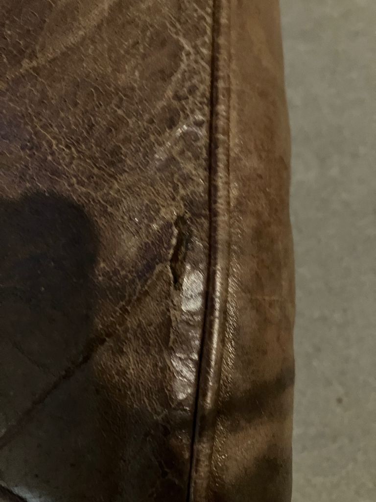 It has a 2cm rip on one cushion, no bottom lining and the leather is hard on the back of one cushion but not in a noticeable place.