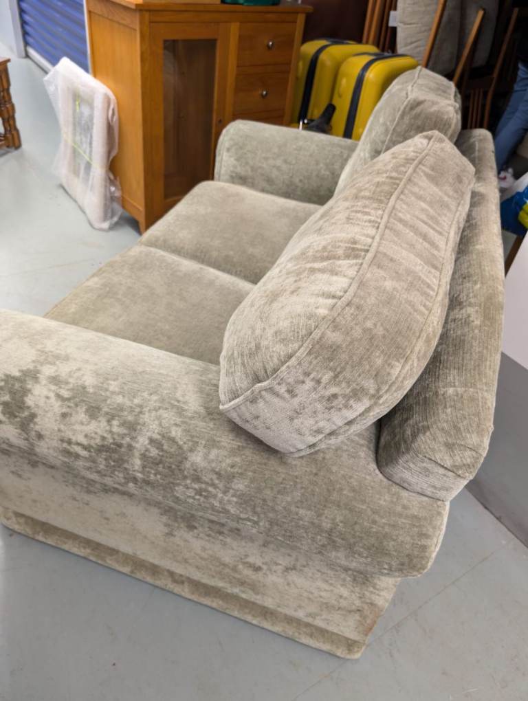Two seater sofa in good condition no longer needed, it has been in a storage unit for the past year and would need a clean to freshen it up. It did have wheels but we haven't found them as yet but free for collection from the storage unit.