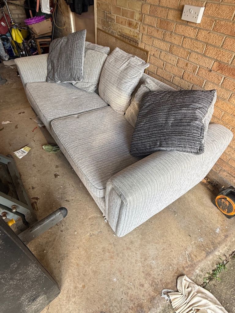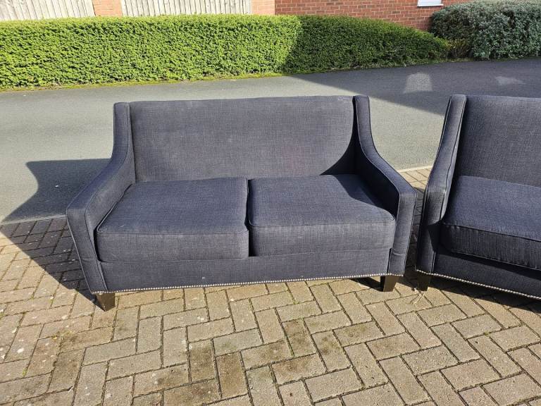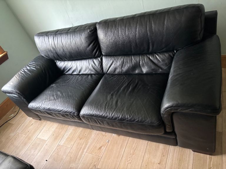 3&2 black leather sofas must collect