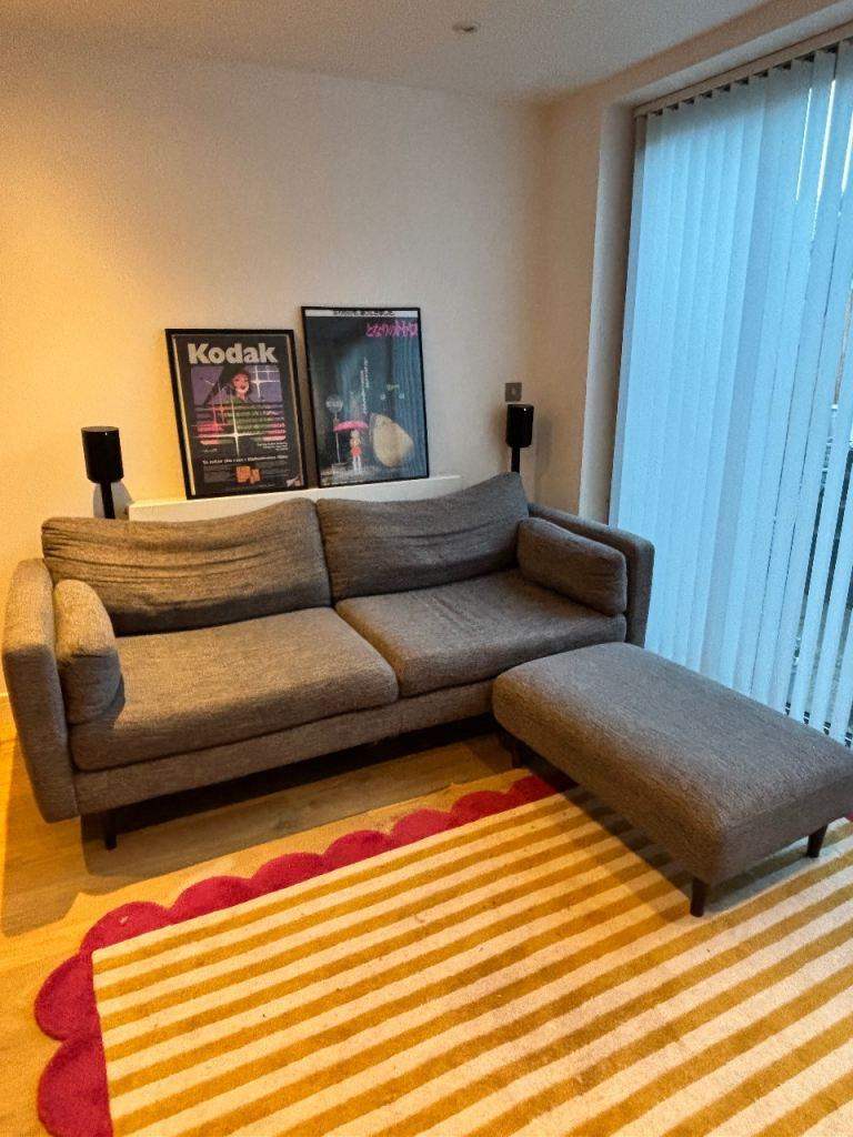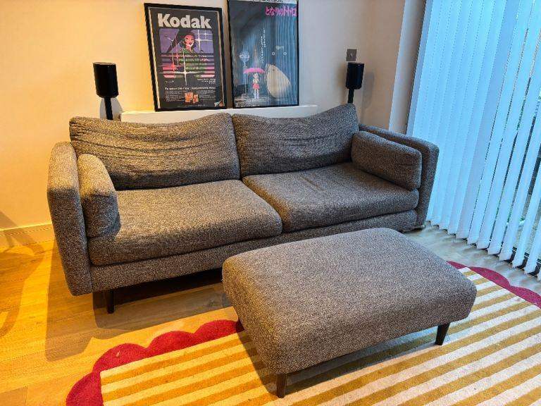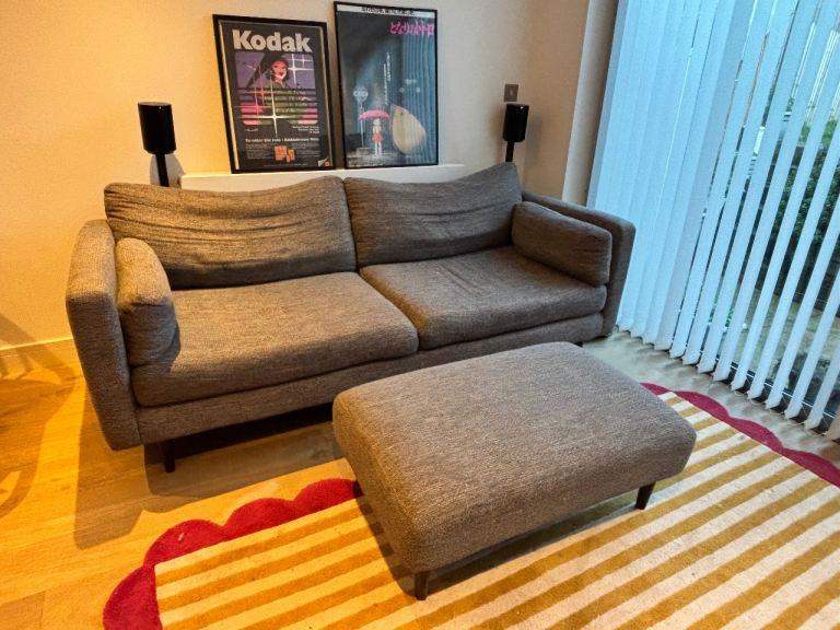 3 seater French Connection sofa + footstool for sale in charcoal grey. Original retail price of £1250.