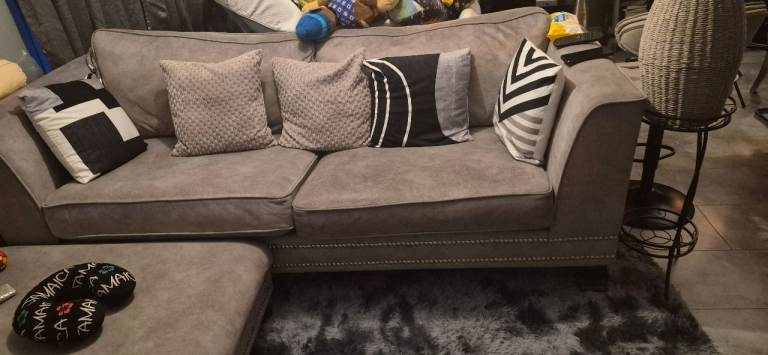Selling this set consisting of one 5/6 seater corner sofa, one large 4 seater plus one large ottoman in silver marble colour, cost almost £2000 for the set. In very good good condition, no rips or tears from smoke free, pet free house. This set is from the endurance range. SCS, Selling the whole set, for £1200. Can include some cushions, if needed. Sofas are extremely comfortable. Selling to purchase a different colour sofa.