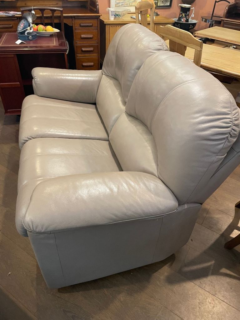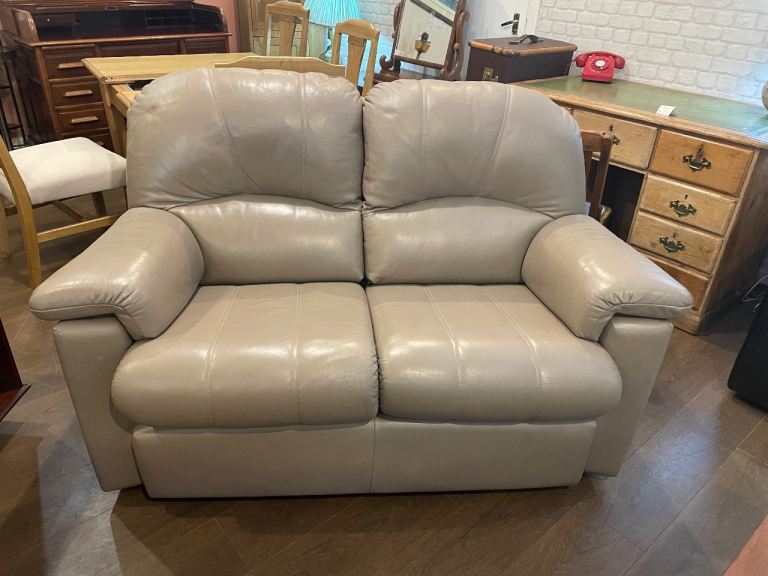 G Plan sofa from the G Plan Chloe Range, this compact 2 seater sofa in lovely greyish taupe colour in soft Italian leather with generously padded arms and bull-nose seat cushions provides exceptional comfort and support.