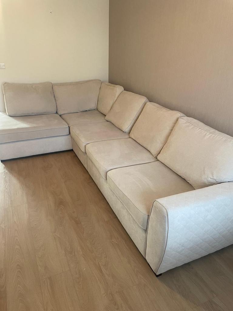 Recently re-sprung seats, and re-webbed back. The back, seat and arms all zip off and can be washed/tumble dried. Length is 185cm seating is 150cm. Height of back is 90cm and front is 50cm. Depth is 100cm