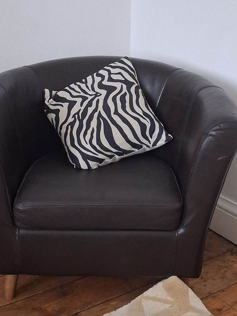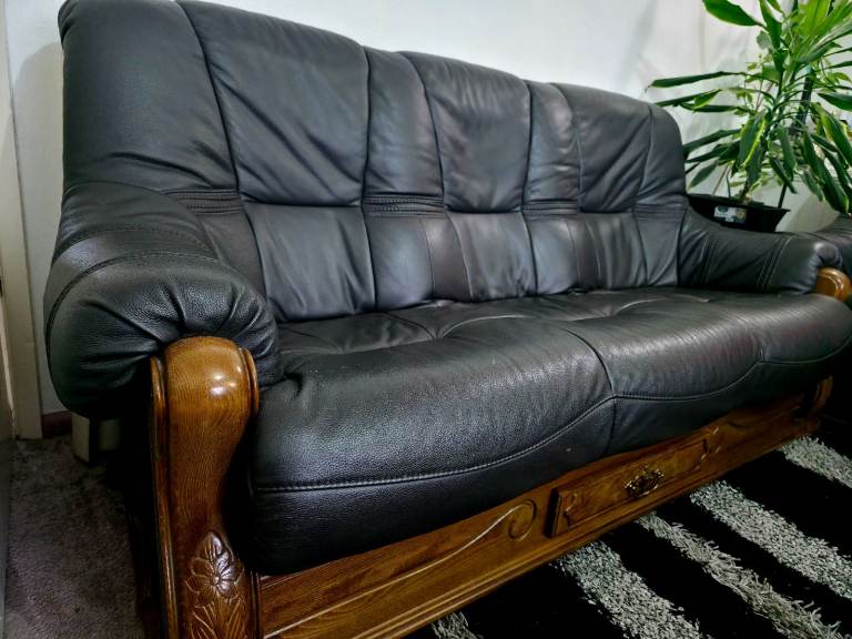 Sleek Dark Chocolate leather sofa with a classic carved wooden base — comfy seating for your lounge, ready to cosy up! 🛋️✨2 Piece 5 seats.