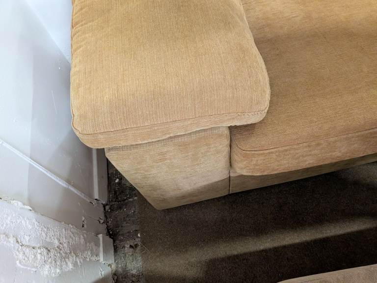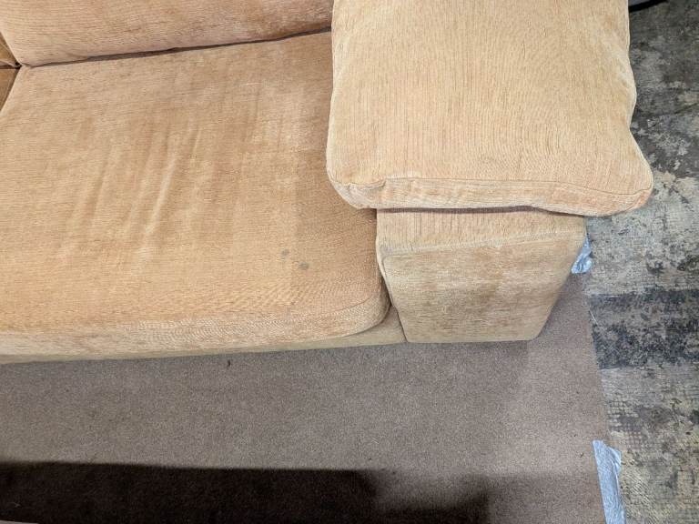 Gold fabric 3 seater sofa for sale in good condition there is some marks on it £80. I can deliver for free in the Galashiels area