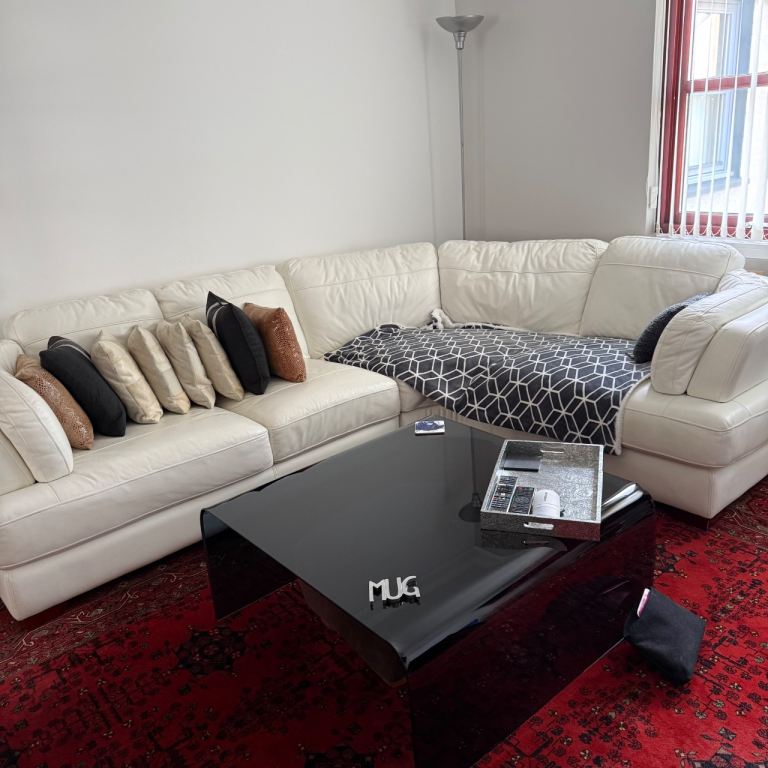 Posting for under a monthGorgeous white leather corner sofa