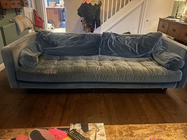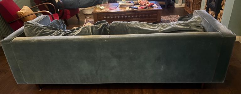 Large 3 person green sofa, could be a great project piece for someone handy.