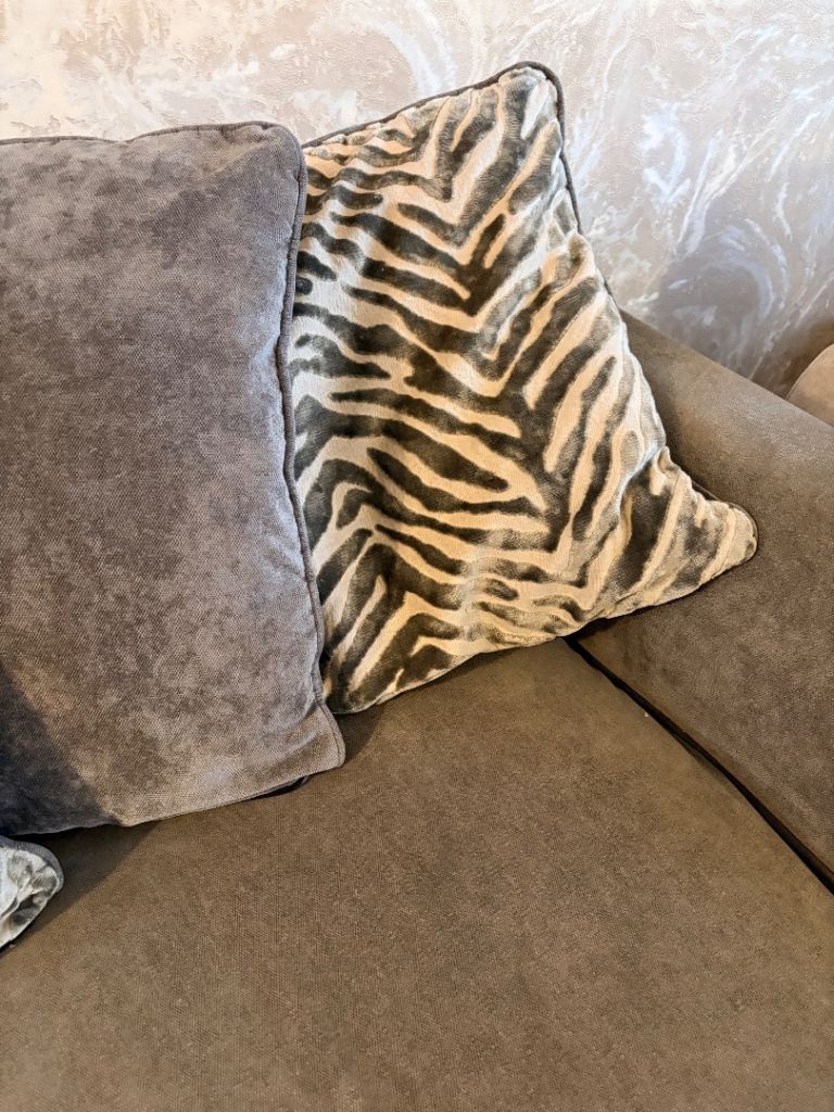 Grey, the zebra print cushions are grey on the other side