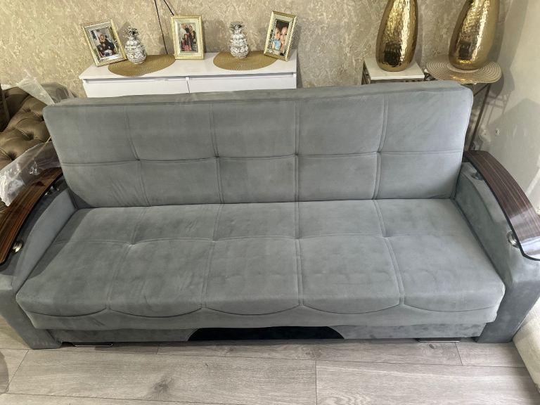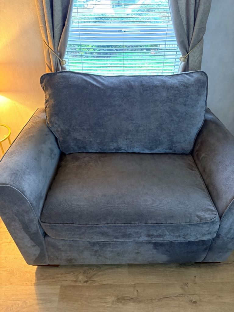 Grey 3 seater sofa and cuddle chair