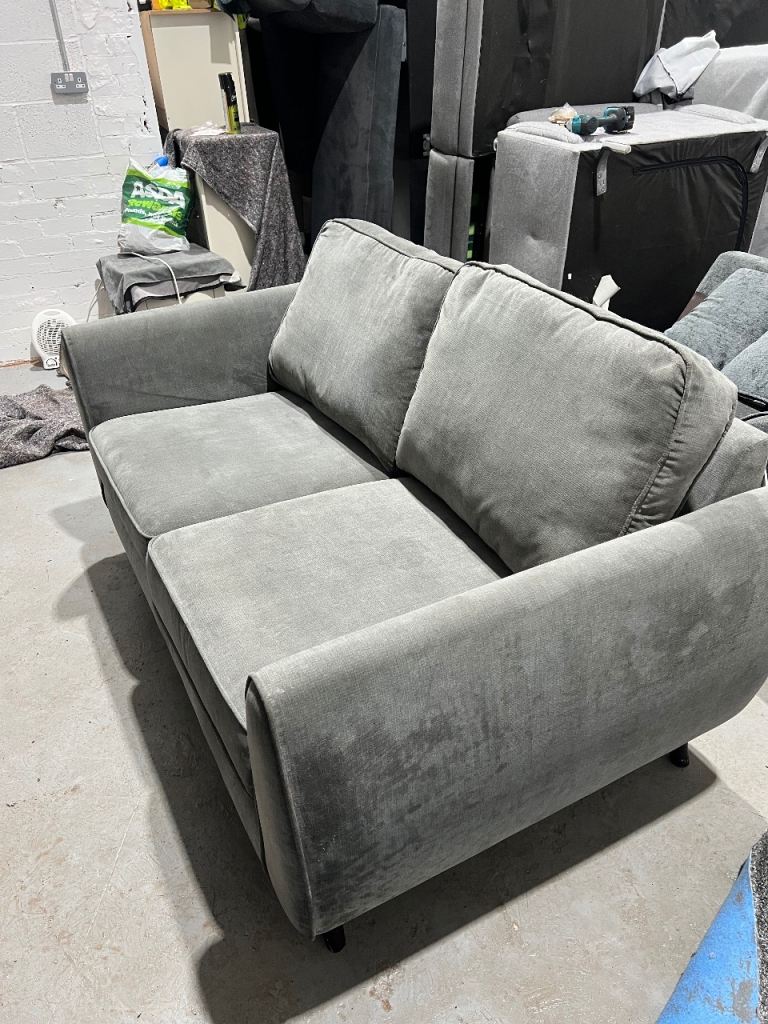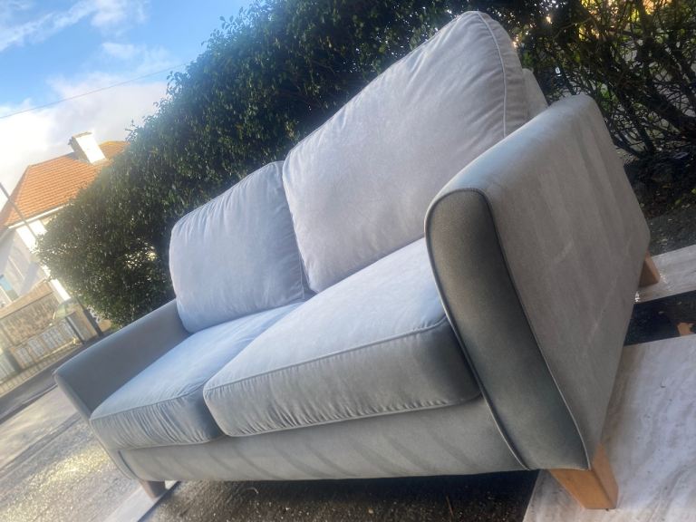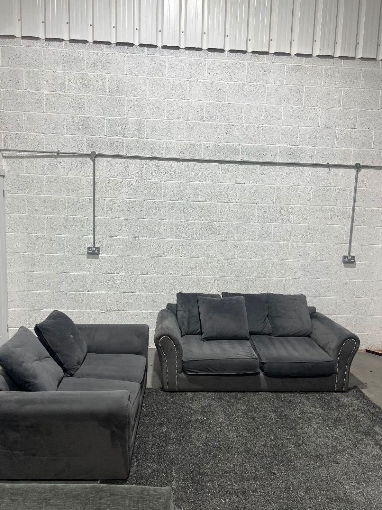 Grey Two matching crush velvet 3 seater sofas in good clean condition collection or can deliver