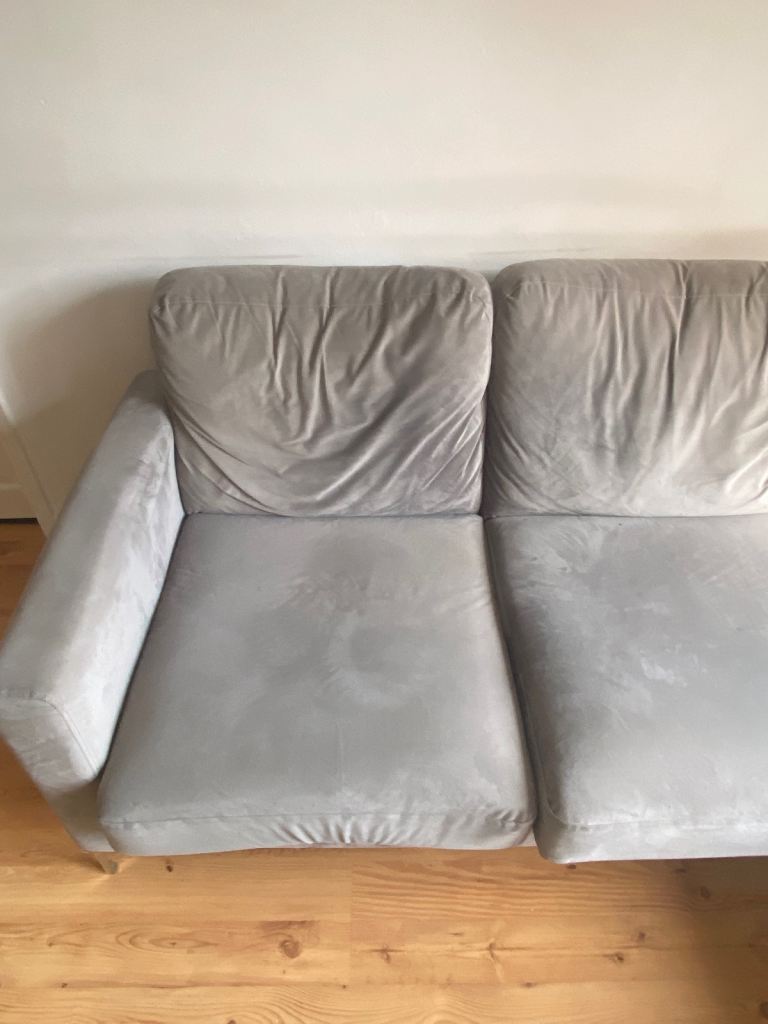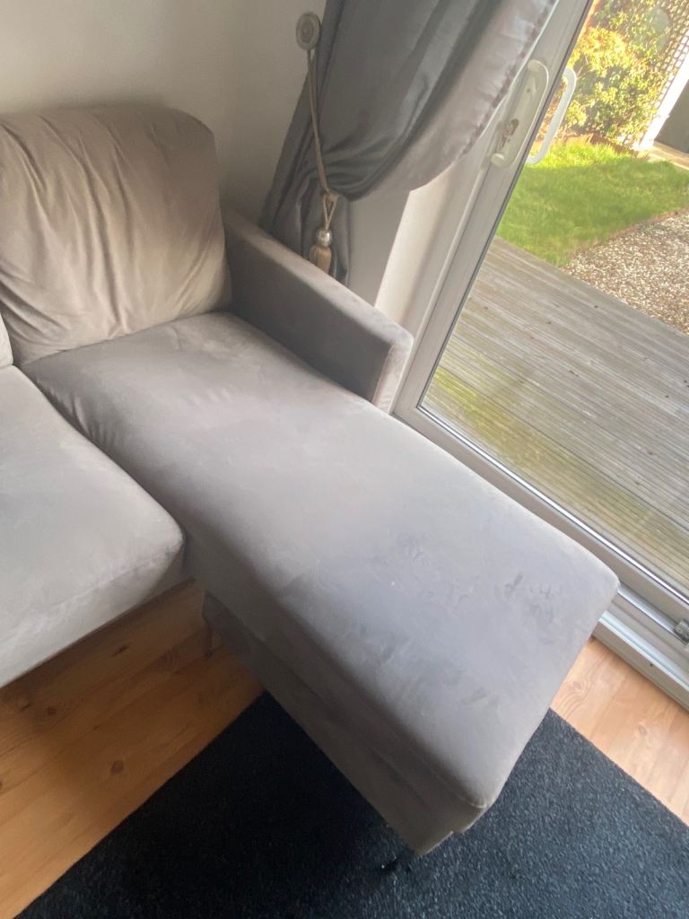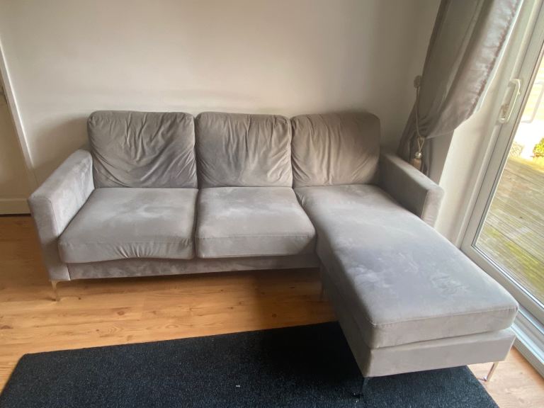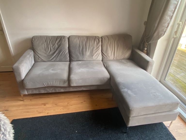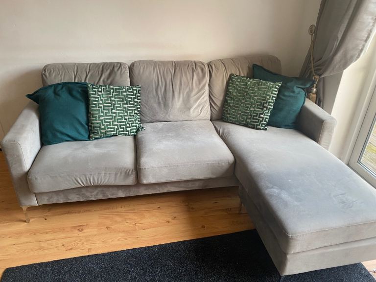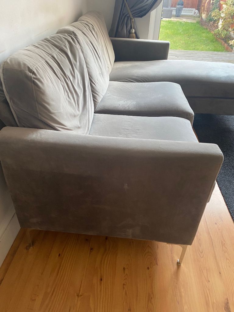 Posting for under a monthGrey 4 seater velvet chaise sofa - great condition