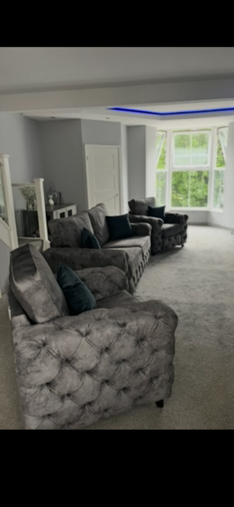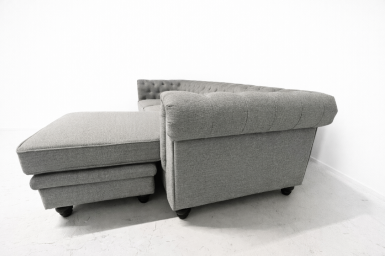 Posting for 1+ monthsGrey Chesterfield Style Corner Sofa with Chaise Footstool - Delivery Available