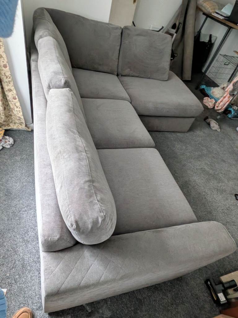 beautiful condition only a year old, always been covered with throw blankets, house move forces sale. grey, we chose the higher more expensive seating foam,