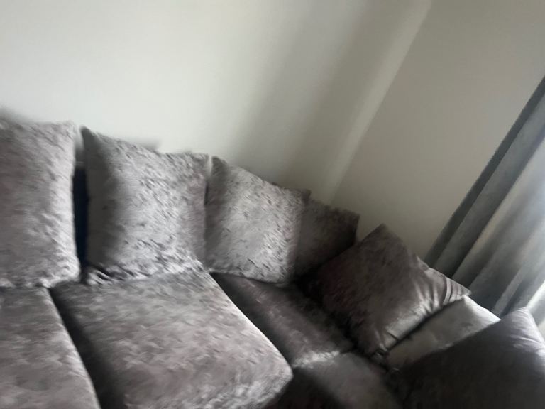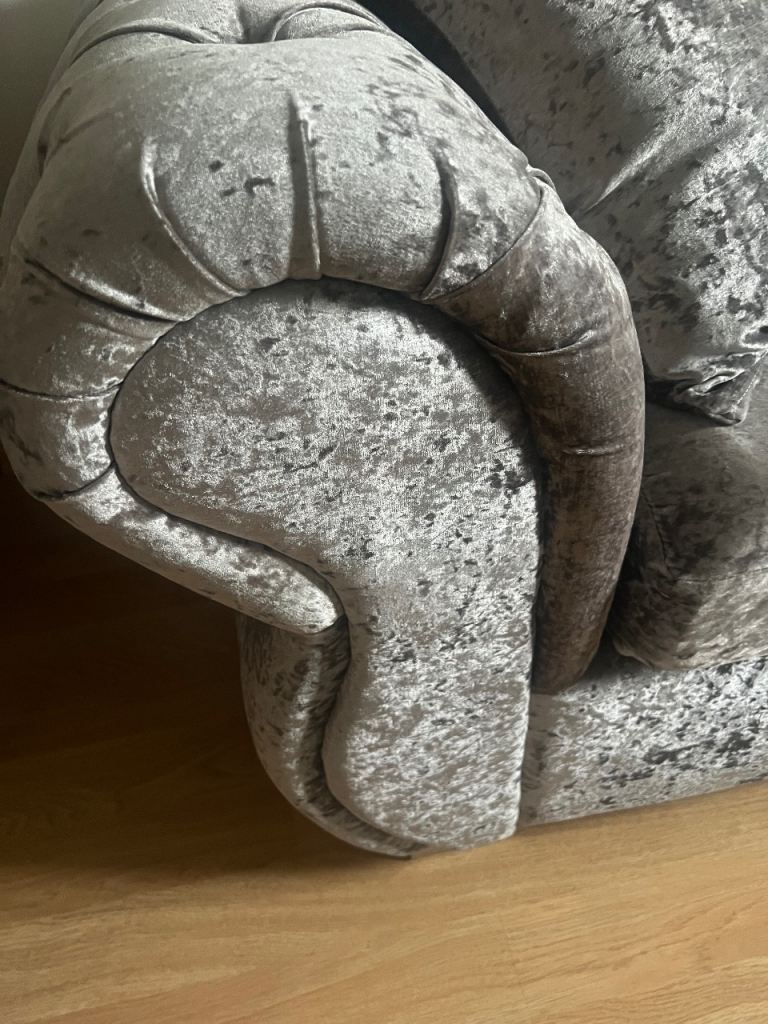 Posting for 11+ yearsGrey crushed velvet sofa