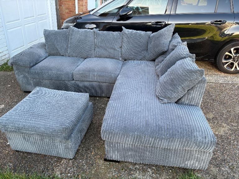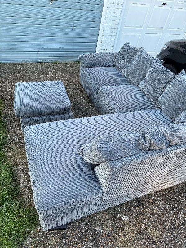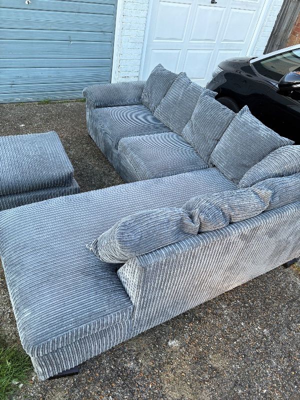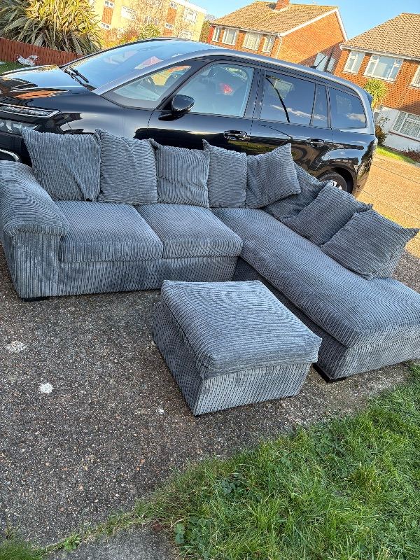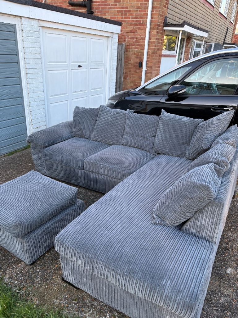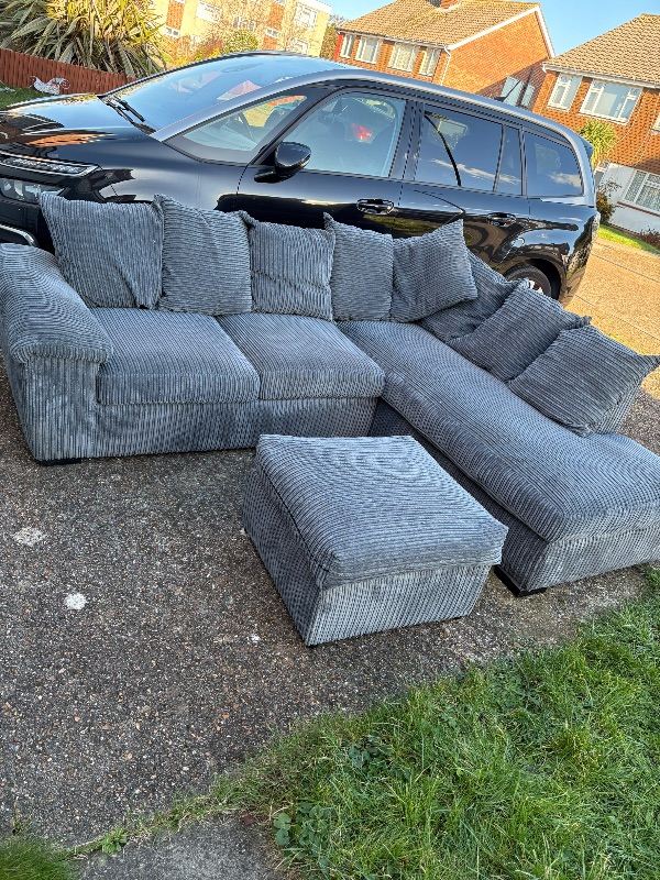 ▪️lovely grey corner sofa in good condition also comes with the footstall