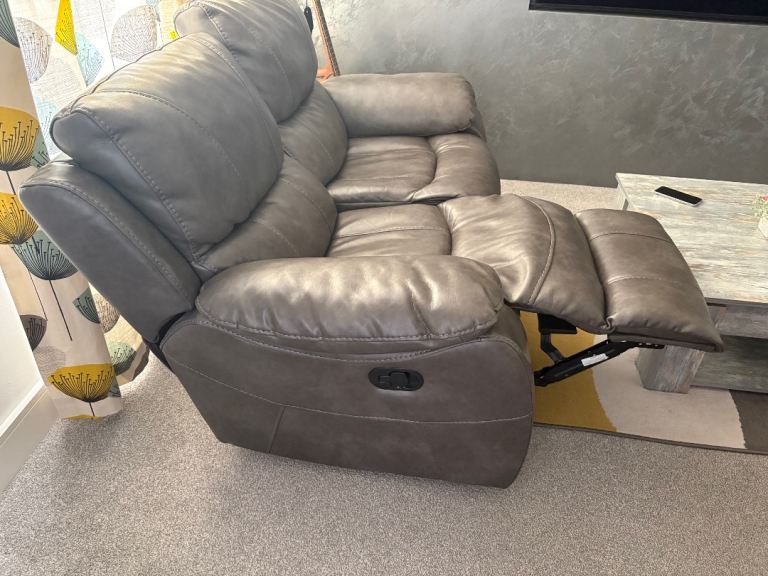 Grey Faux Leather Corner Sofa & 2 Seater with Recliner Function