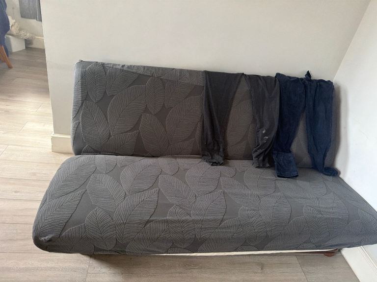 Grey sofa bed, perfect for a spare room or studio apartment.