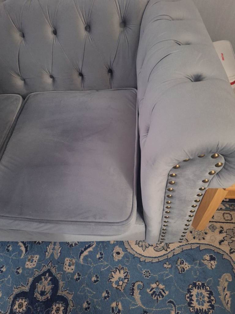 X2 2 seater sofa. Grey velvet fabric. Bought for £700. 6 months old. In very good condition.