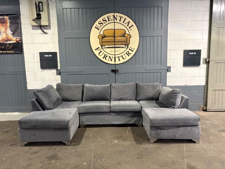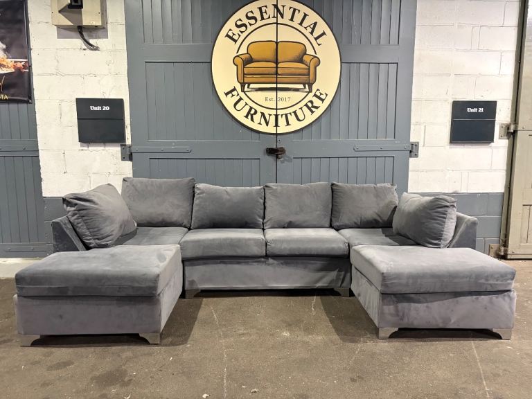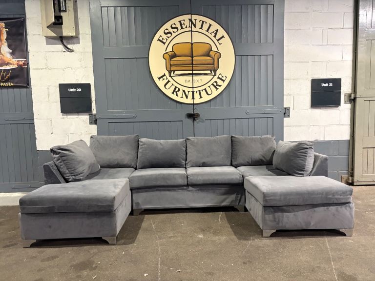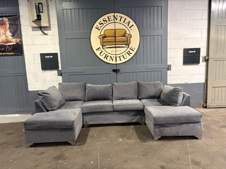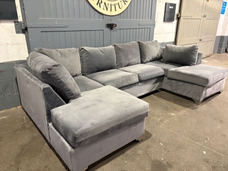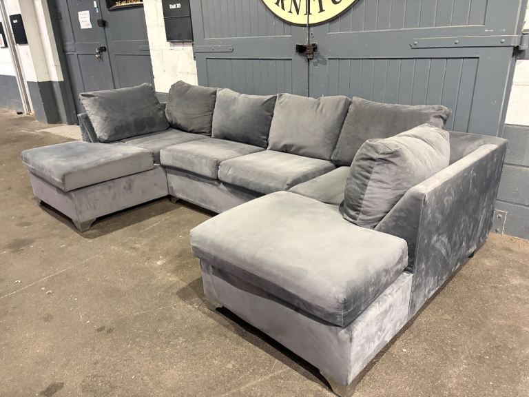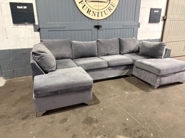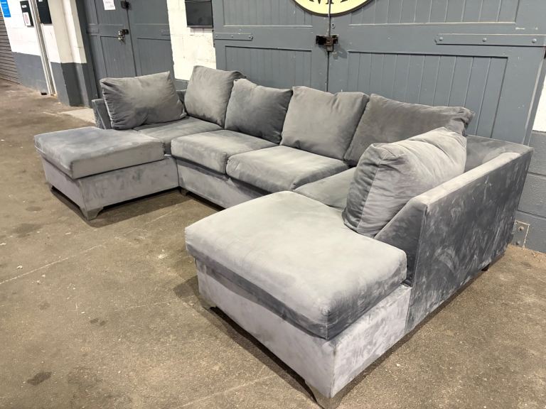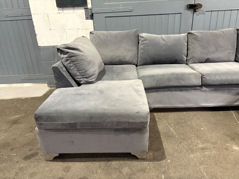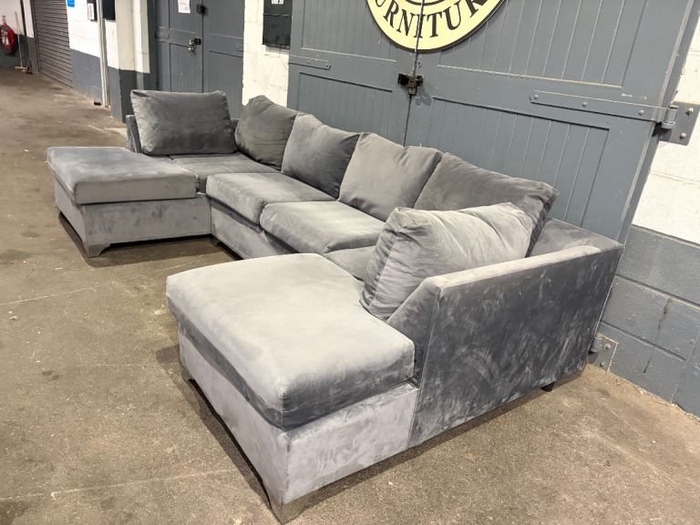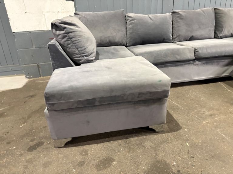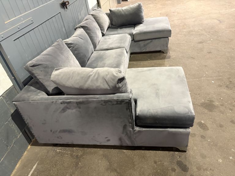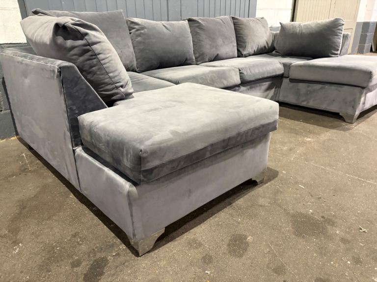 Grey velvet U / L shape sofa, FREE DELIVERY