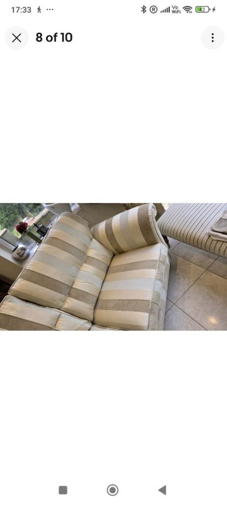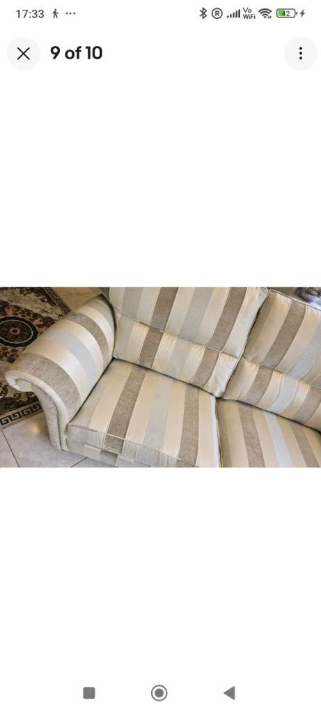 in very good condition with only 2 tiny marks as in last photo, this can also be positioned under seating so not visible, very carefully used by elderly couple, comes with armcovers