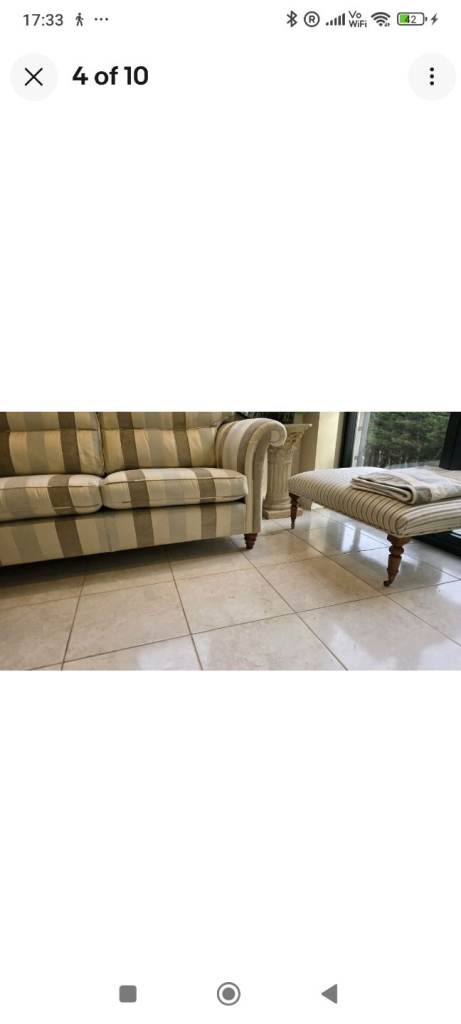 Handmade DURESTA 3 seater sofa & footstool in hardwearing beautiful neutral fabric