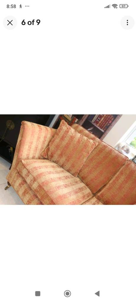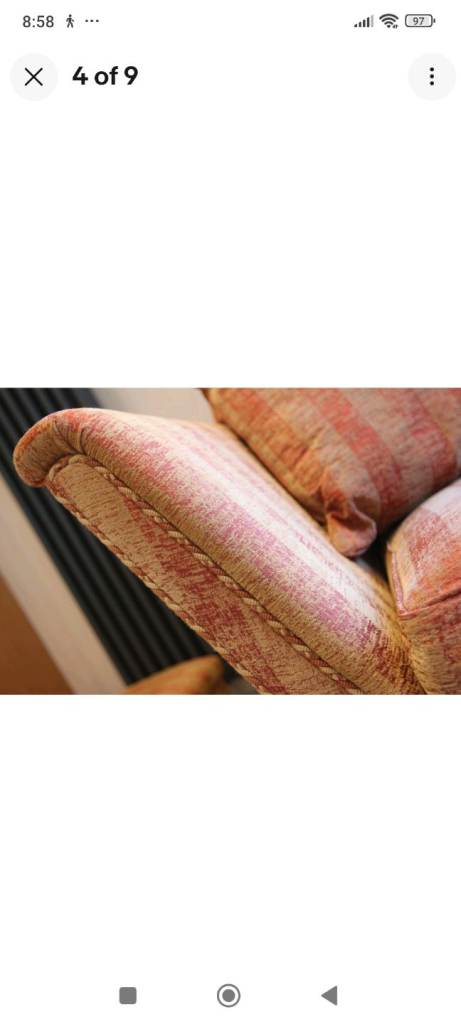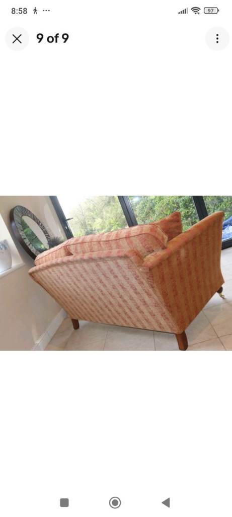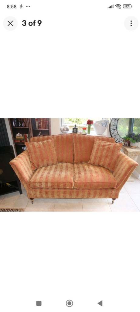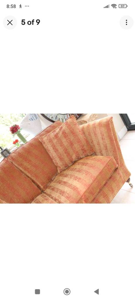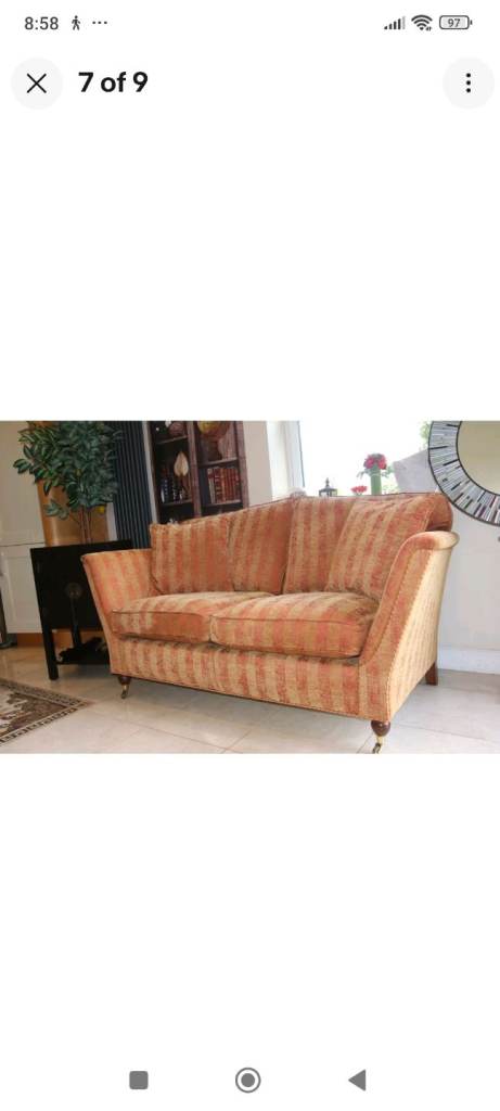 Ruskin model in symphony stripe and hardwearing terracotta and gold fabric